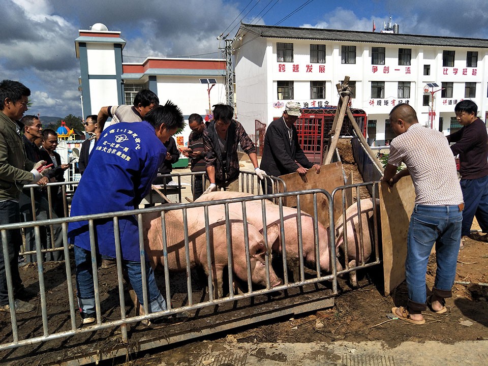 在此之前,罗武庄乡就对农户家中近期可出售的猪、牛、鸡、羊等数量进行统计,详细掌握各村可出售农产品存量,根据统计情况,中国石油大学(北京)对罗武庄乡农户养殖的100公斤以上存量生猪以每公斤31元的价格进行收购。