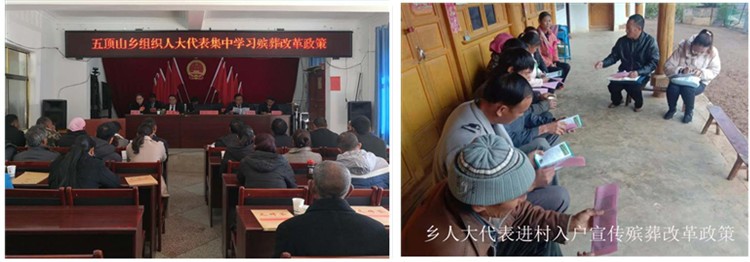殡葬改革工作政策性强、涉及面广、社会关注度高,为进一步将殡葬改革政策落到实处,五顶山乡切实发挥全乡各级人大代表的作用,助力殡葬改革工作,为实施乡村振兴战略、推进生态文明建设夯实了基础。