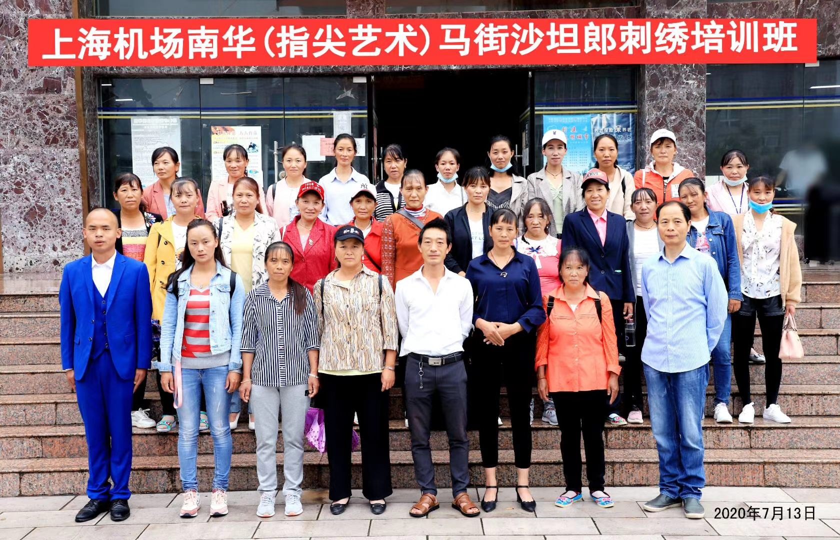 7月18日下午6时,南华县马街镇沙滩郎彝族刺绣培训班圆满完成全部培训课程,来自沙滩郎村委会30名建档立卡贫困户学员全部结业。此次培训班是由上海国际机场出资,南华七彩彝州工艺品刺绣加工产扶贫车间承办,旨在为建档立卡贫困劳动力掌握一门创业技能而开展的专题培训。
