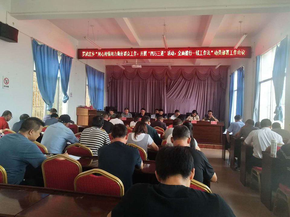 近日,罗武庄乡组织召开用心用情用力做好群众工作,扎实推进“四万三进”活动,全面推行一线工作法动员部署会议。全乡干部职工、村“三职”干部及驻村工作队长共70余人参加会议。