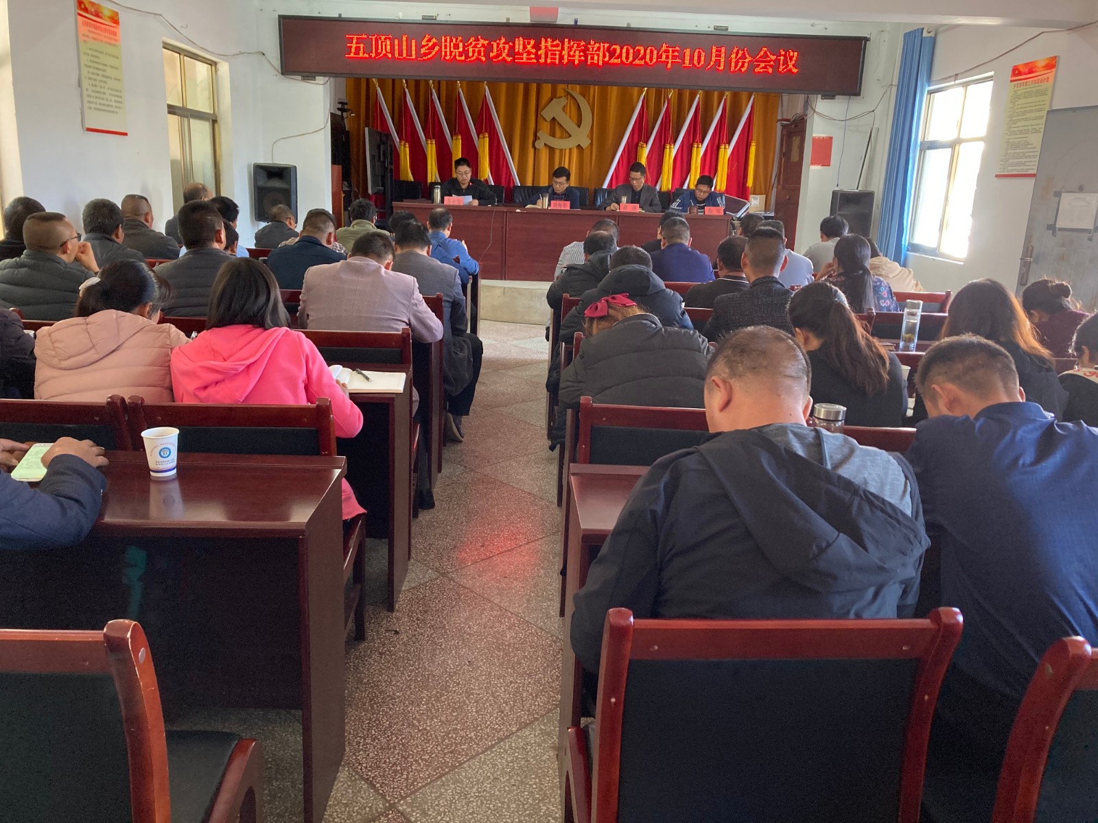 在五顶山乡脱贫攻坚指挥部2020年10月份会议上,周海章提出三个要求:一是要求从严从实、落细落小,以更加严实的作风,推动脱贫攻坚各项工作开展;二是要求对标对表、提质提效,严格按照标准落实迎接2020年度脱贫攻坚成效考核各项准备工作;三是要求善始善终、善作善成,一鼓作气打赢脱贫攻坚战。