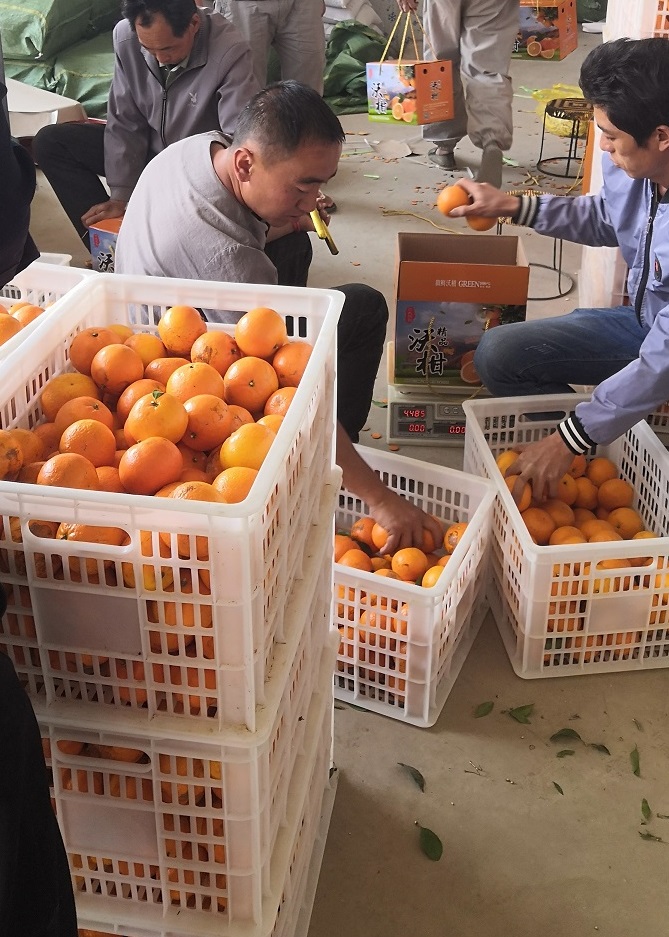 在红土坡镇产业扶贫种养殖专业合作社的冷链物流储藏室内,工作人员正在有条不紊的进行沃柑的分拣、称重、包装等工作,脸上挂满了喜悦自豪的笑容。“这是石油大学的老师们跟我们买的沃柑,等着这几箱打包完,就可以发货运送过去了。”合作社的工作人员说道。