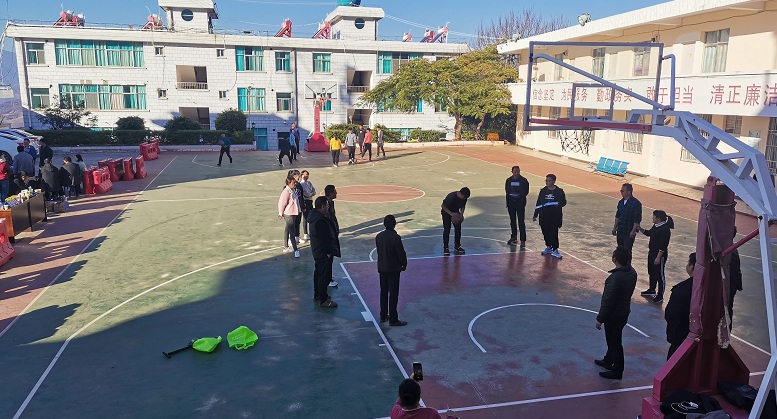 1月3日,红土坡镇举办2021年新年职工运动会。此次运动会设篮球赛、拔河赛2个团体项目,设定点投篮、跳绳、乒乓球、纸杯趣味吹乒乓球4个个人项目,来自全镇各条战线上的125名干部职工组成6个代表队参赛。