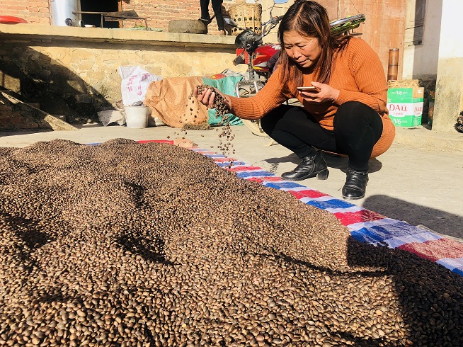 初冬时节,笔者来到南华县红土坡镇依黑么村委会林产品加工厂,刚走进车间大门,就闻到飘来的松子香味,车间内一台台机器有条不紊地运转着,饱满油亮的松子仁从筛选机中倾泻而出。“今年镇党委政府将我们村的松子产业作为全镇‘干在实处、走在前列’比拼的产业标杆来打造,并积极探索‘党总支+合作社+加工厂+农户’的发展路子,带领农户闯市场。”村委会书记段从富告诉笔者。