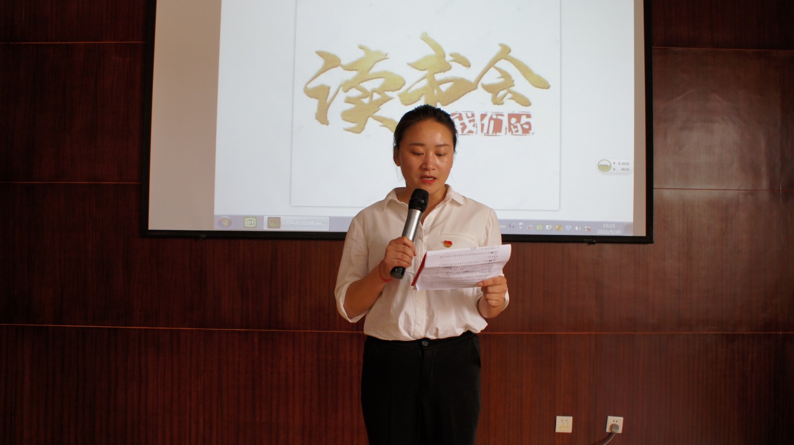 读书会在机关一支部夏正、廖成芳两位同志分享的《红船——从南湖启航》中大会拉开序幕,各支部先后通过朗读、朗诵、演讲的形式分享了《有一首歌》《战斗日记》《回眸党史 感恩祖国》《传承红色基因 争做时代新人》《沁园春·雪》等节目,现场不时响起阵阵热烈的掌声。