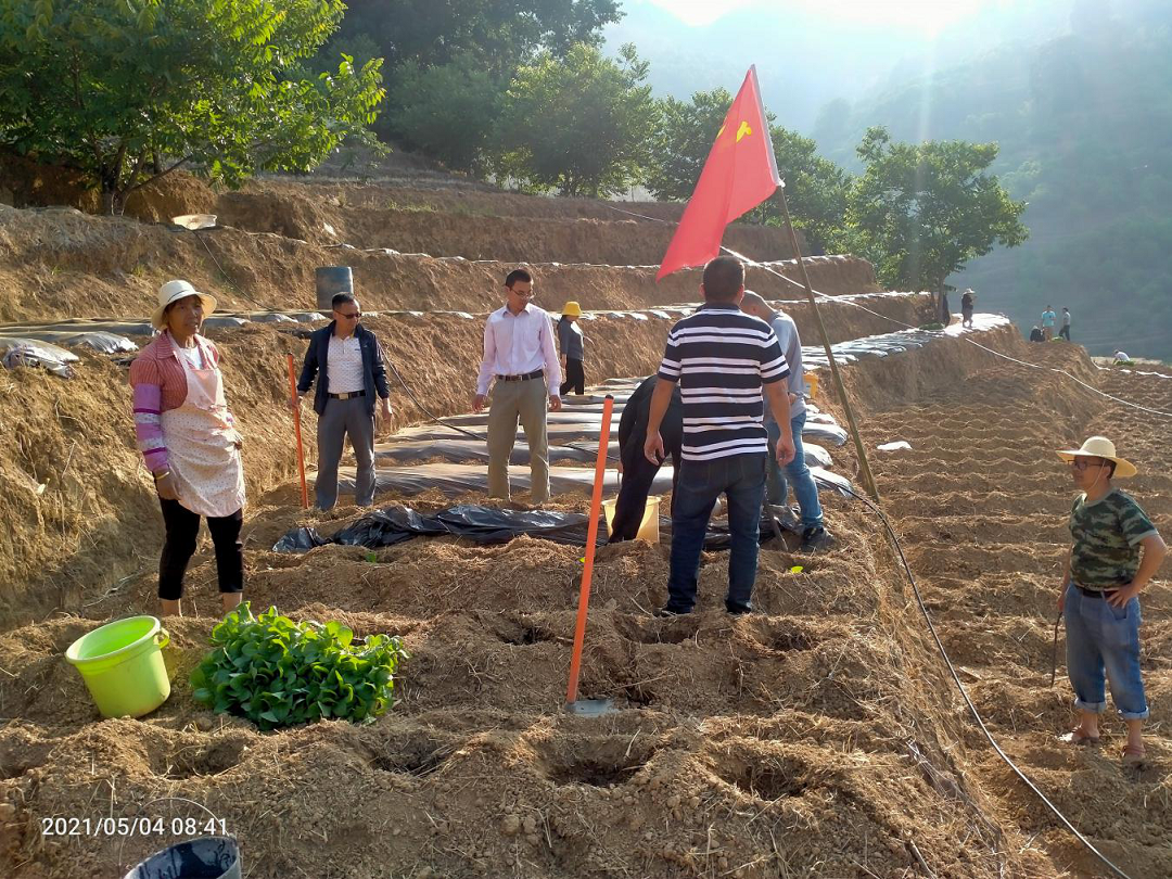 5月4日一大早,党员同志们纷纷卷起裤脚、挽起袖子,操起农具,挖地、种植,边劳作边与群众交流,与主人拉家常、谈党史学习教育和国家惠农政策,整块地里飘荡着欢声笑语。