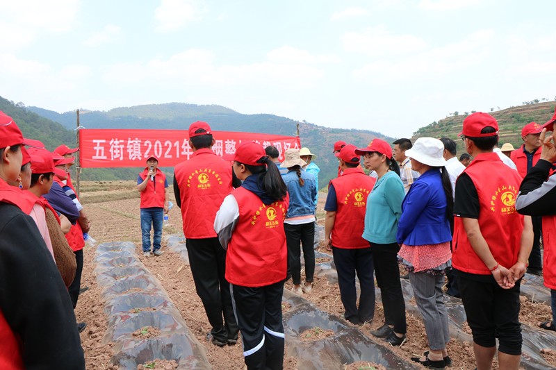 在移栽现场,烤烟种植技术人员就烟叶特性、移栽、后期管理、水肥要求、病虫防治做了详细介绍,对参与移栽工作的人员做了培训,为提升烟苗成活率提供了技术支持,同时也为烟农后期管理提供了技术指导。
