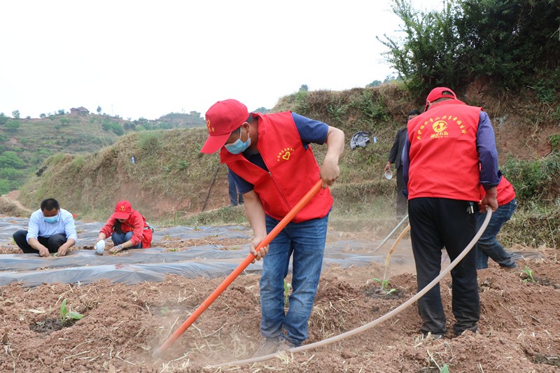 大家分工明确,从选好高质量烟苗着手,放苗、培土、浇水、盖膜,互相沟通交流,合力完成烟苗栽种。