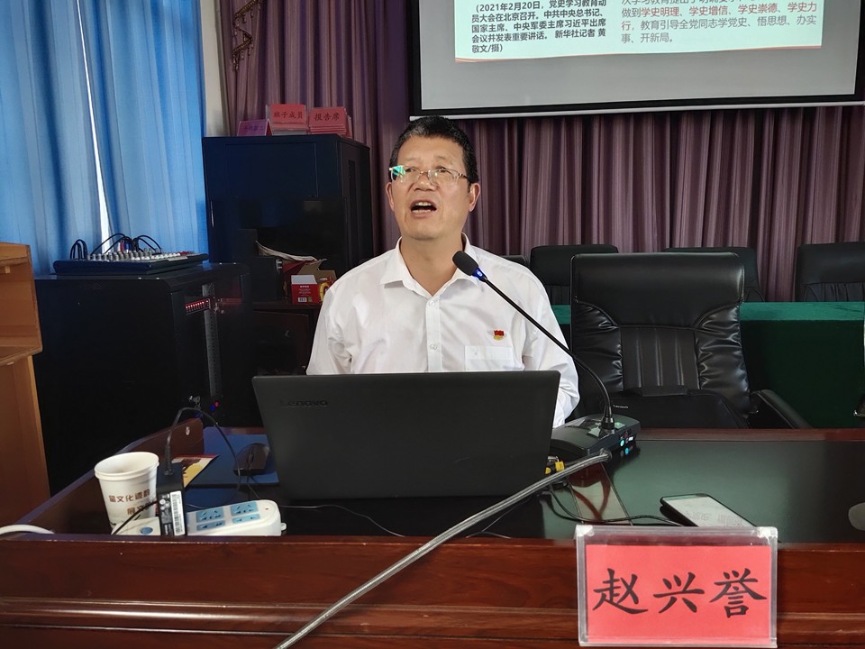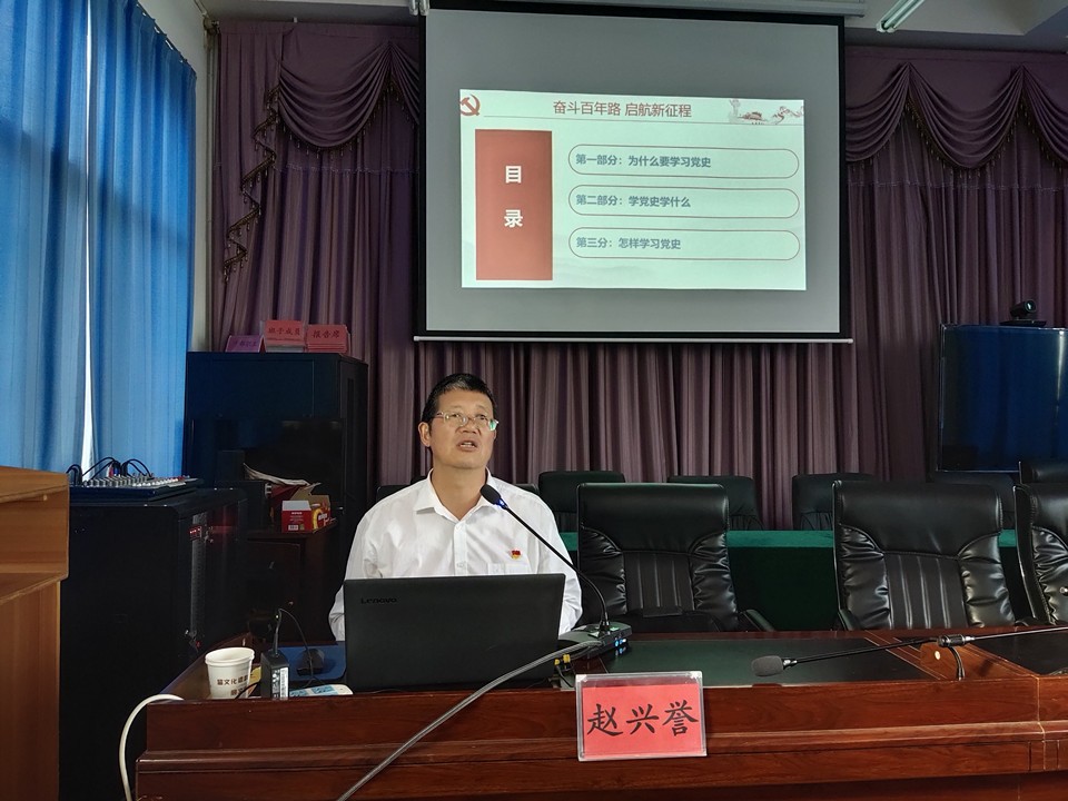 宣讲会上,赵兴誉以《奋斗百年路,开启新征程》为题,紧紧围绕学习领会习近平总书记关于党的历史的重要论述,结合南华红色革命历史,用鲜活的事例、精彩的语言,对建党一百年以来的光辉历程、伟大成就、宝贵经验进行了多层次、全视角、分重点、有针对性的解读,为广大党员干部上了一堂系统、生动的党史学习教育课。