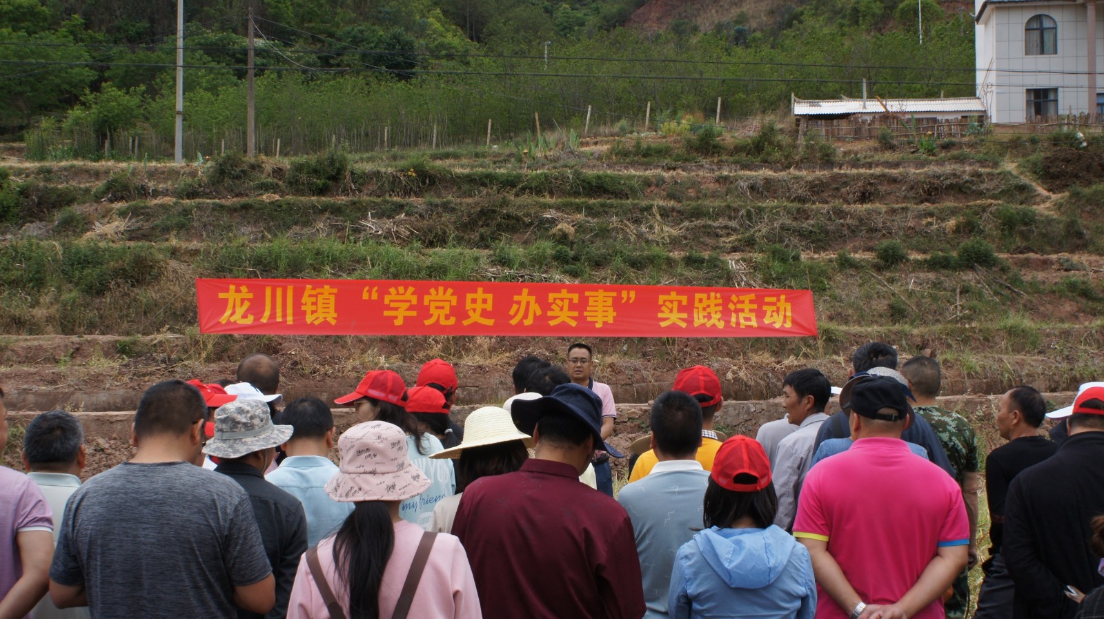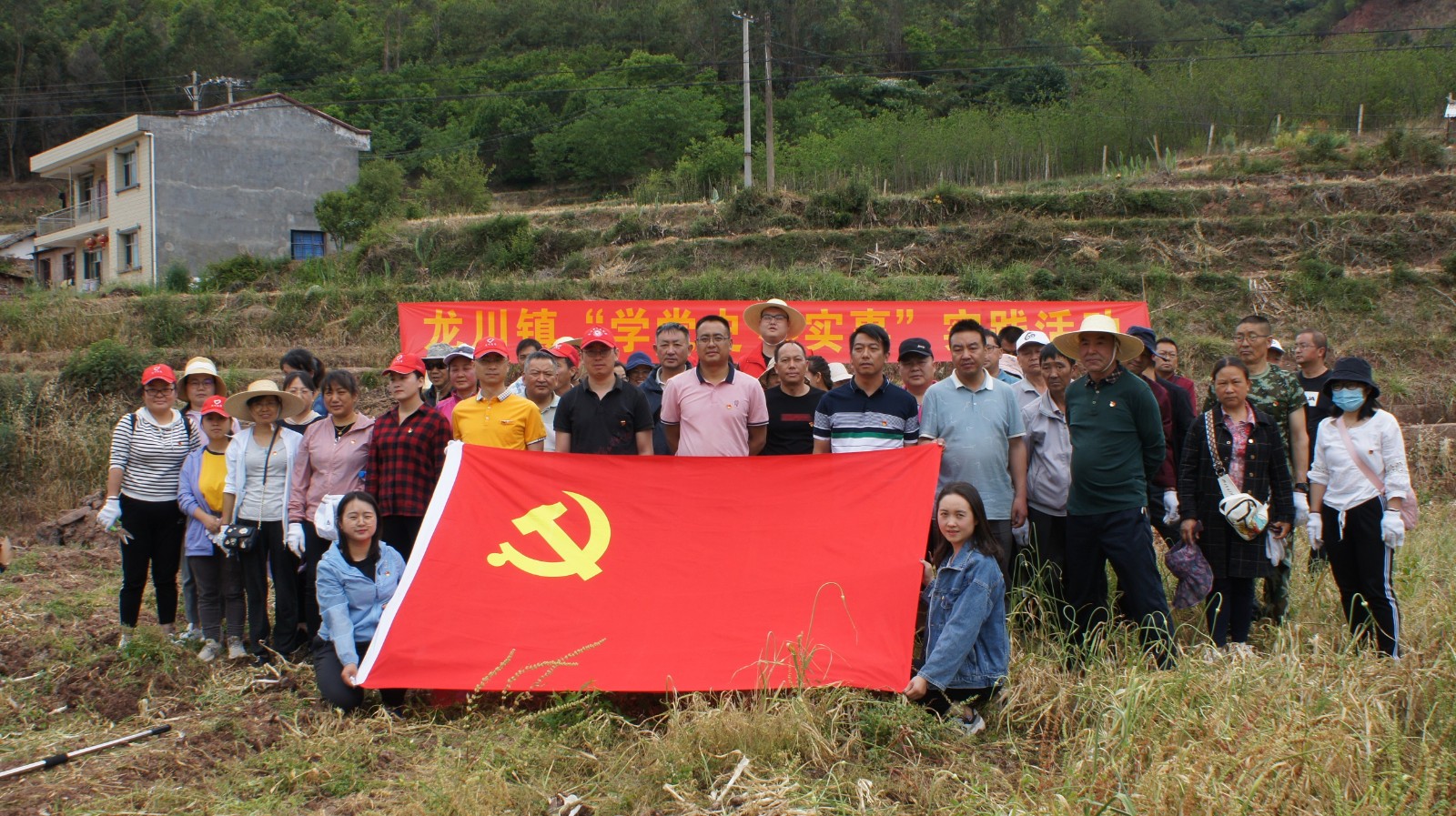 5月7日下午,龙川镇组织镇属4个党支部60余名党员到蟠龙村委会民家村大蒜种植基地开展党史学习教育“我为群众办实事——助农促增收”活动。