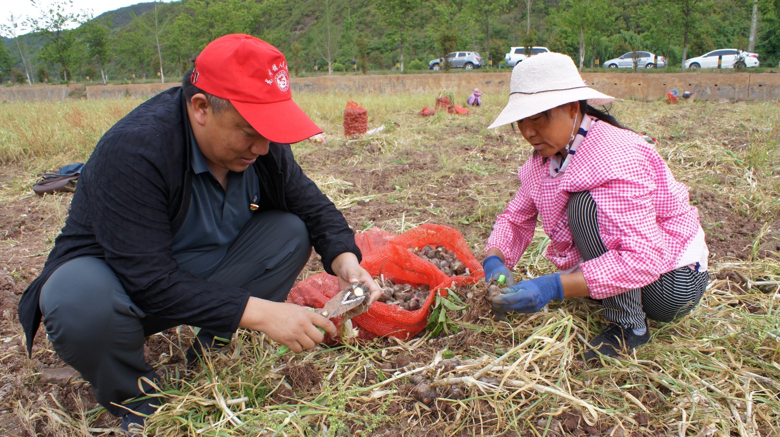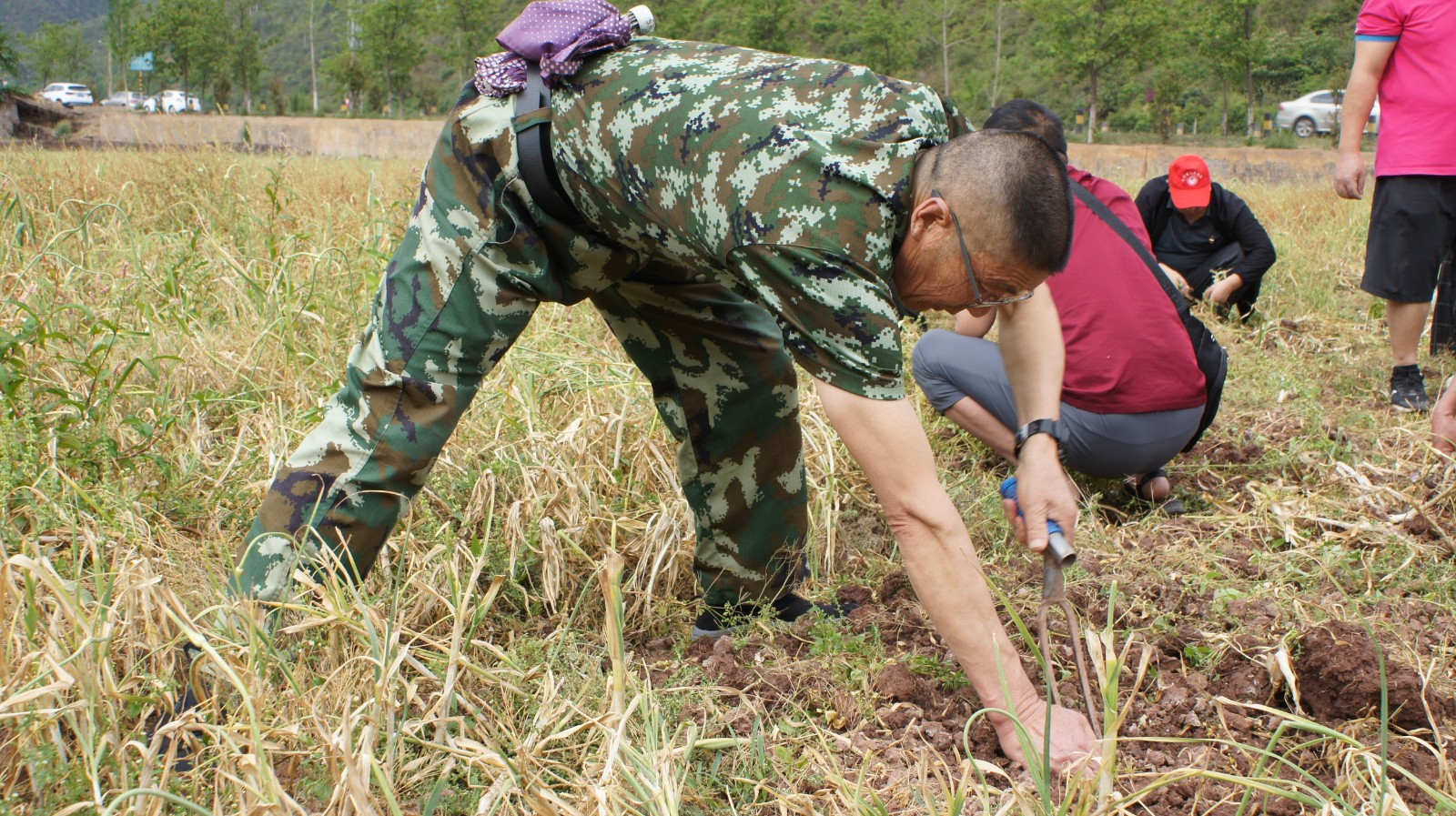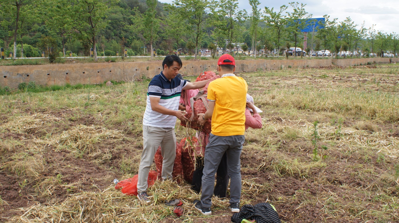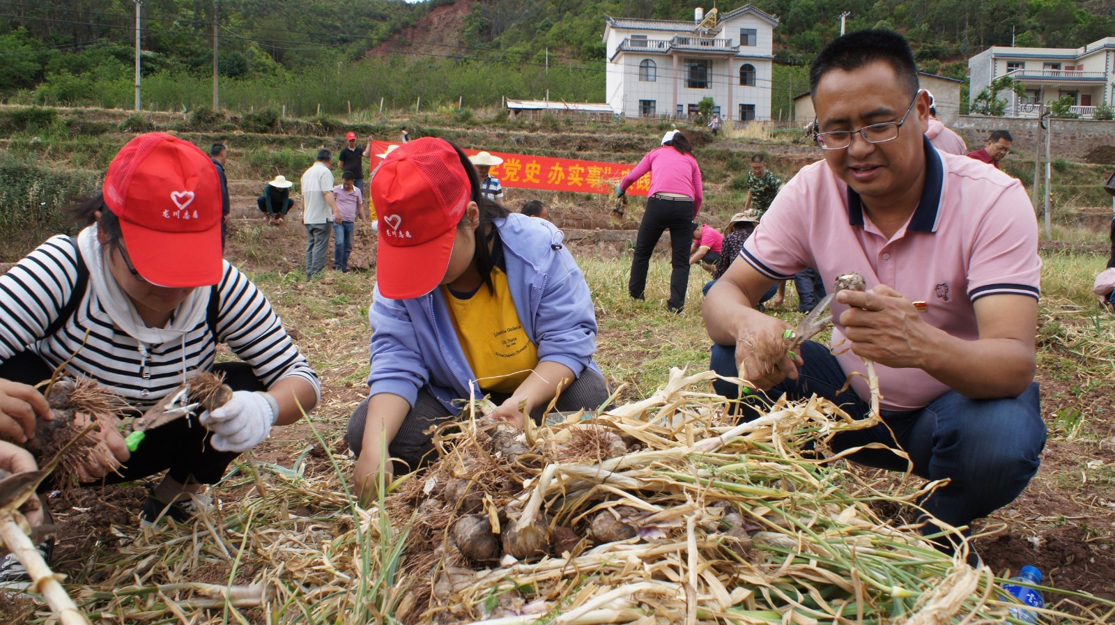随后,参加活动的部分党员为正在田里采收大蒜的群众送上了“爱心”饮用水,并叮嘱他们在高温天气注意防晒防暑;全体参加活动党员在认真聆听了群众的“技术指导”后积极参与到爱心助农活动中,帮群众拔蒜、断茎、修根、装袋,忙得不亦乐乎;最后,党员们还向群众购买了53公斤大蒜,力所能及助农促增收。