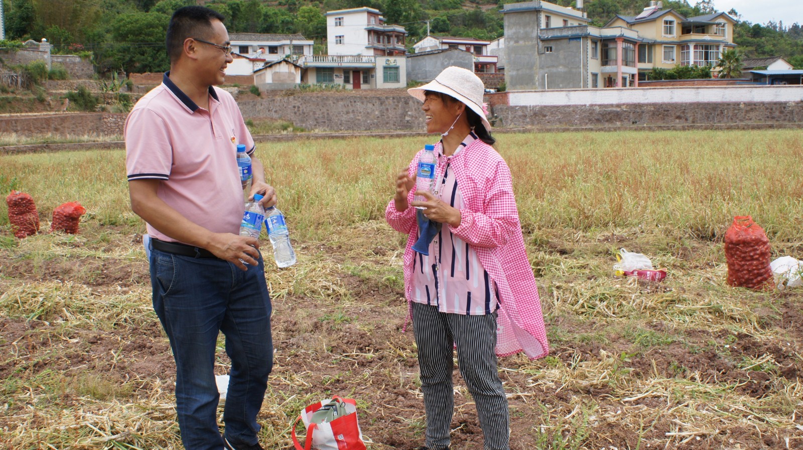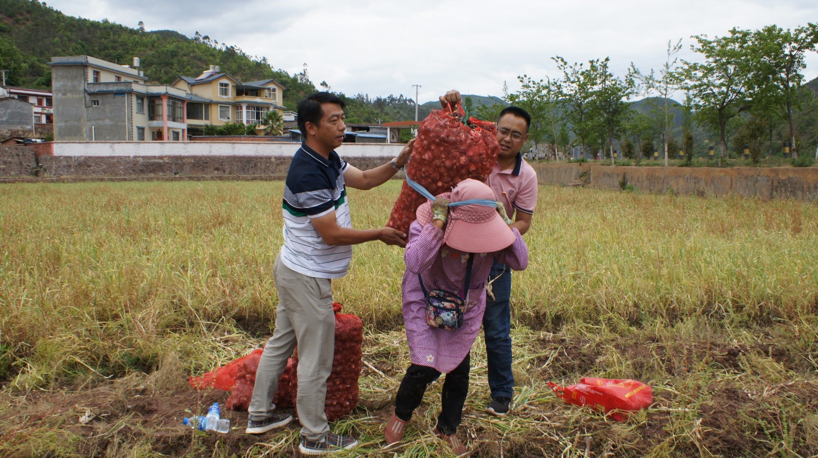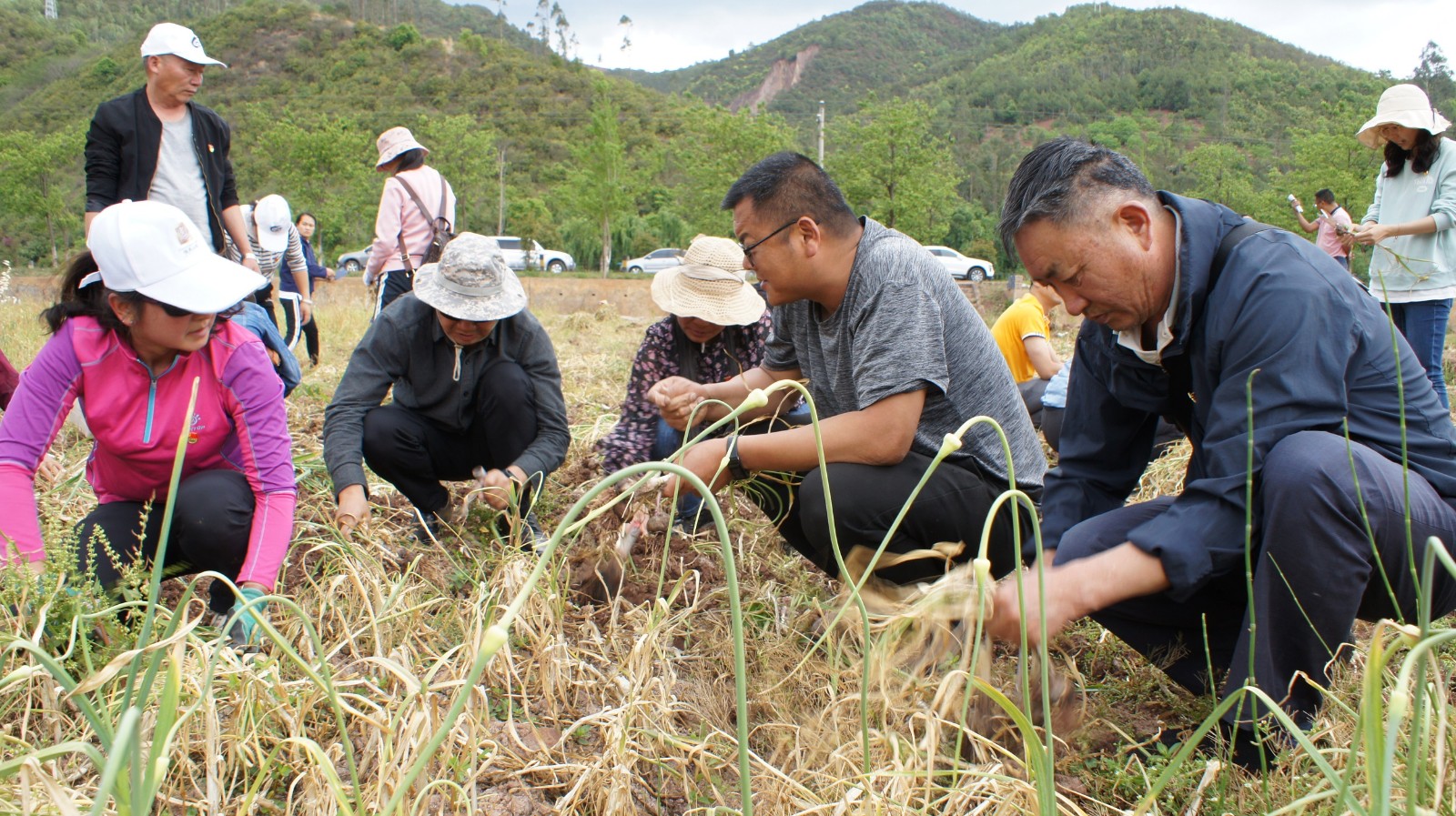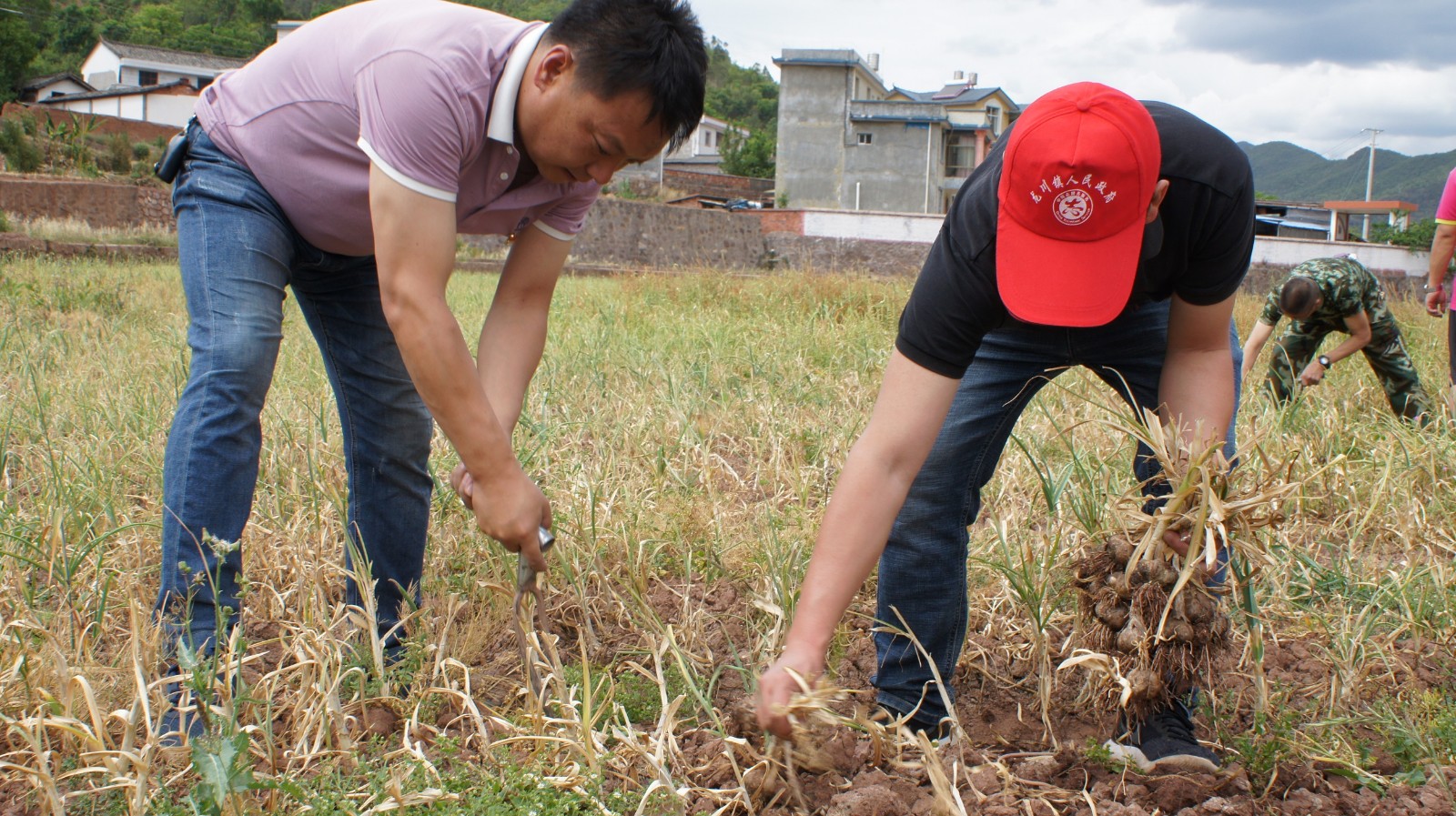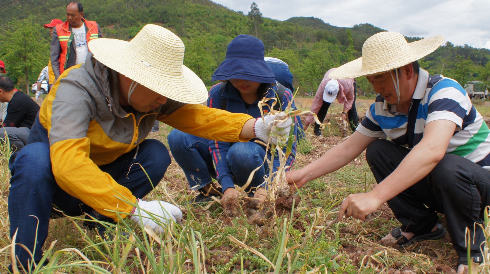 随后,参加活动的部分党员为正在田里采收大蒜的群众送上了“爱心”饮用水,并叮嘱他们在高温天气注意防晒防暑;全体参加活动党员在认真聆听了群众的“技术指导”后积极参与到爱心助农活动中,帮群众拔蒜、断茎、修根、装袋,忙得不亦乐乎;最后,党员们还向群众购买了53公斤大蒜,力所能及助农促增收。