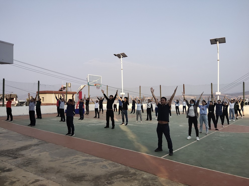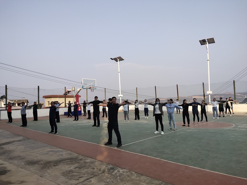 工间操是一种易学易行、不受场地限制且便于普及和推广的集体健身形式,深受广大干部职工和群众欢迎。除星期一开干部职工例会,其余每天早上8:00,“现在开始,原地踏步走!一二三四,五六七八……”随着第九套广播体操音乐响起,在文化站篮球场,全体干部职工们精神抖擞,整齐列队,和着节拍,舒展身体,动作规范,整齐划一,成为一道靓丽的风景线,展现出良好的精神风貌和饱满的工作活力。以实际行动落实“社交距离、勤于洗手、分餐公筷、革除陋习、科学健身、控烟限酒”的美丽南华罗武庄新风尚。