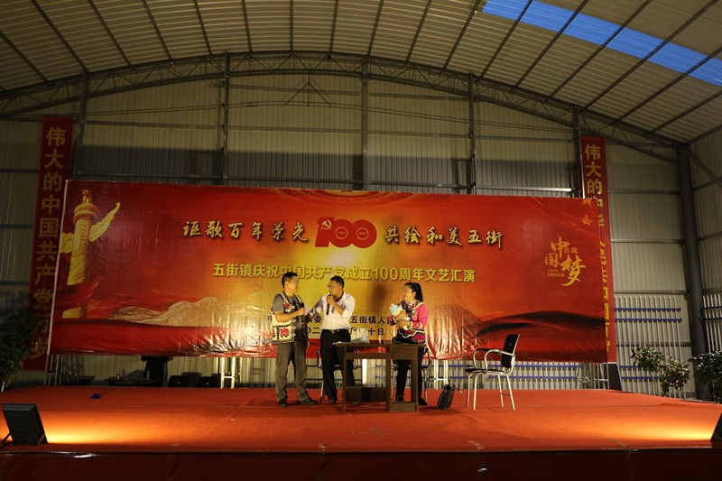 为方便更多群众观看演出、扩大晚会影响,落实疫情防控常态化,五街镇庆祝中国共产党成立100周年文艺晚会采用了现场集中观看和网络直播相结合的方式进行,让更多无法到现场观看的群众能一饱眼福,足不出户看演出。据悉,晚会现场观众200余人,网络直播总观看量突破6000人次。