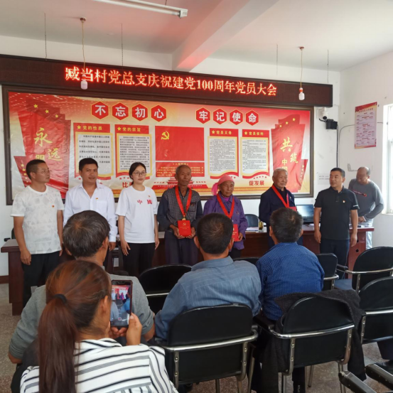 召开庆祝中国共产党成立100周年党员大会。会上重温了入党誓词;为党龄达到50周年、一贯表现良好的党员颁发“光荣在党50年”纪念章,对他们所作出的贡献给予高度评价,同时希望老党员们继续为乡村振兴凝聚力量、发光发热;乡联系领导周兴云同志和沈娅梅同志分别为党员讲授党课,号召大家牢记入党初心和使命,发挥旗帜领航作用;村党总支书记张承福向该村的党员们总结汇报了上半年开展的工作以及下半年的工作打算,并希望各位党员对村党总支及村委会的工作多给予支持、多提宝贵意见。大会在《没有共产党就没有新中国》的歌声中宣布结束,党员们用自己的歌声向伟大的祖国献礼致敬。