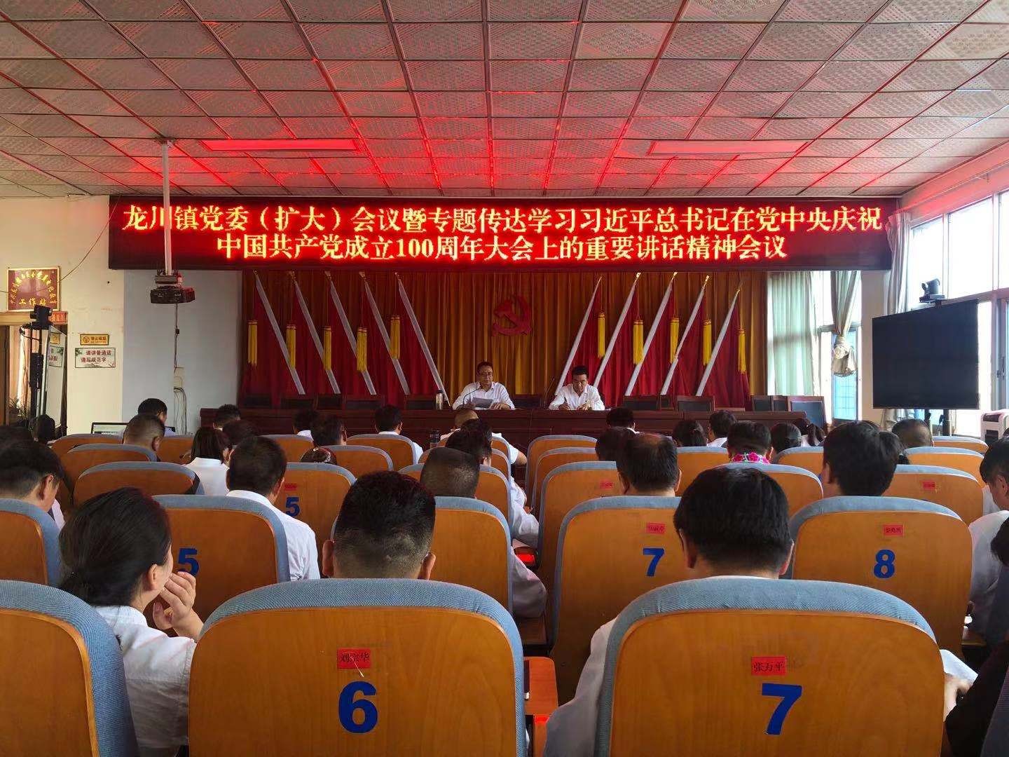 7月1日下午,龙川镇召开党委(扩大)会议,专题传达学习交流研讨习近平总书记在庆祝中国共产党成立100周年大会上的讲话。镇班子成员、村(社区)书记、五办七中心主任、副主任40余人参加会议。