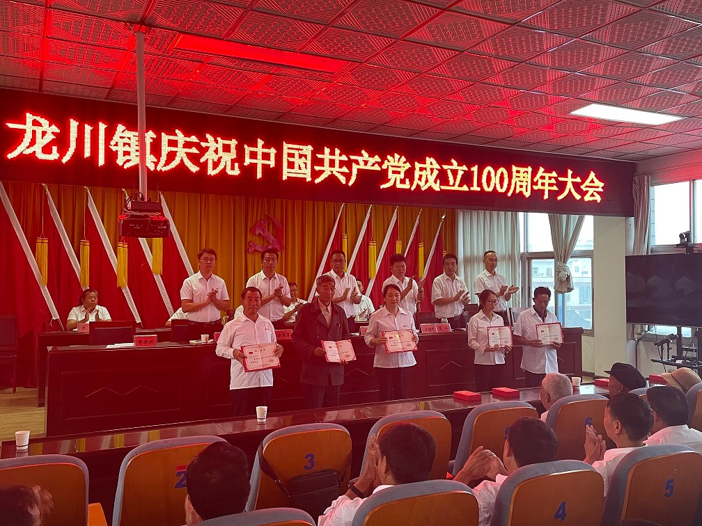 为热烈庆祝党的生日,进一步引导广大党员重温党的光辉历史,讴歌党的丰功伟绩,继承和发扬党的优良传统,切实增强政治意识,大局意识,核心意识,激发广大党员干部立足岗位作贡献,充分发挥先锋模范作用。6月30日下午,龙川镇召开庆祝中国共产党成立100周年大会,全体班子成员、镇属支部全体党员、村(社区)党总支书记、驻村第一书记、“两优一先”代表、老党员代表、五办七中心主任参加了会议。会议由镇党委副书记、镇人民政府镇长主持。