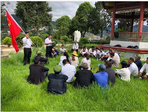 活动中,全体党员重温了入党誓词,组织瞻仰了革命烈士纪念碑和十二位革命烈士墓后,党员同志们围坐在百姓宣讲员的周围,集中学习井冈山精神、长征精神、延安精神;同时认真聆听烈士陵园里先烈革命斗争故事:1950年4月5日夜,暴乱土匪分两路包围马街区政府,向解放军发起进攻,一路从楚雄毕达出发过礼社江经法空包围魁阁领岗,另一路从锈水塘出发经白龙村从蚂蚁堆向区政府进攻。由于敌众我寡,这场保卫战异常激烈。经一夜激战,顽强抵抗的解放军将土匪打退。在这次战斗中,解放军战士黄亚贵、王春保、周有庆、姚常林、张正海、张全平等同志为保卫马街区人民政府和人民群众的生命而光荣牺牲,献出了他们年轻而宝贵的生命......英烈故事把全体党员拉回到了那个战火纷飞的年代,重新回顾了为争取民族解放和人民幸福而献身的革命烈士,再次感受红色教育洗礼。