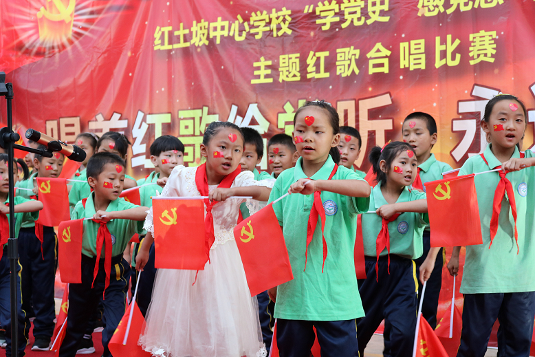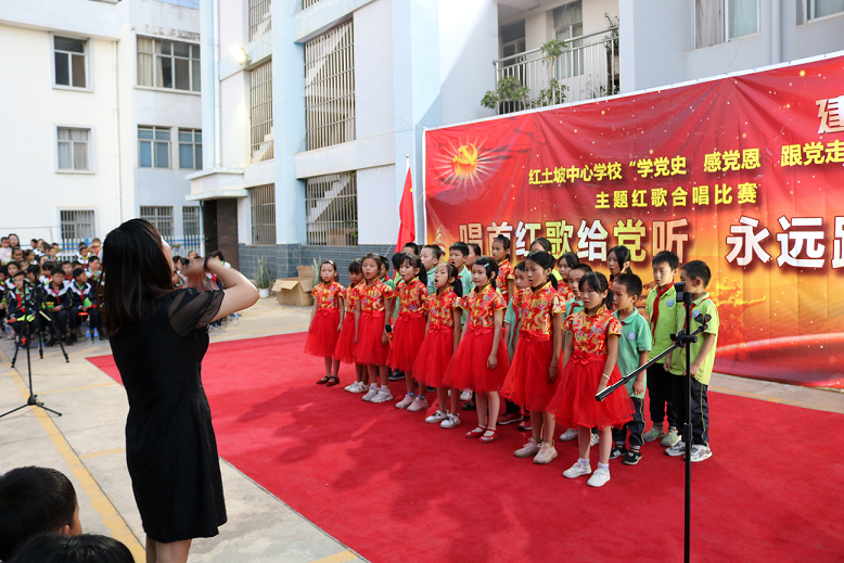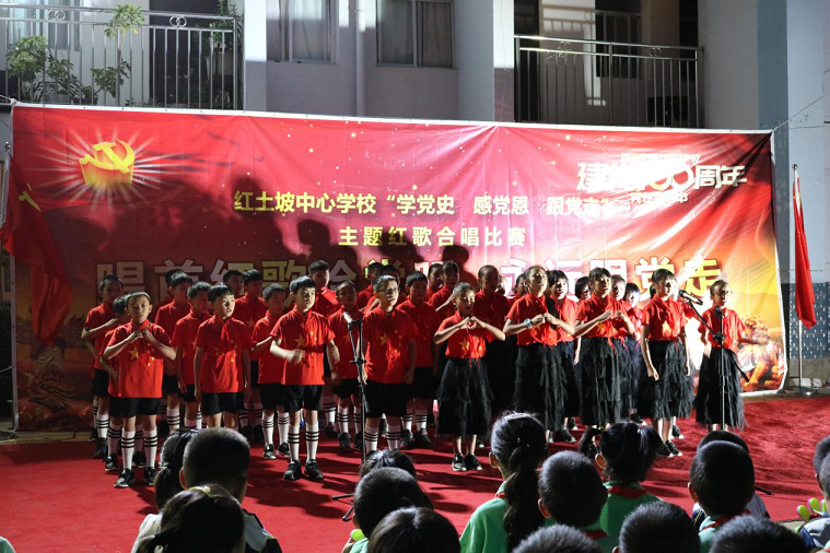 为弘扬红色精神,激发奋进精神,热烈庆祝中国共产党成立100周年,教育学生铭记历史,继承光荣传统。6月24日,红土坡中心学校组织开展“学党史 感党恩 跟党走”主题红歌合唱比赛。傍晚7点,在一片欢声笑语中,红土坡中心学校主题红歌合唱比赛拉开了帷幕。