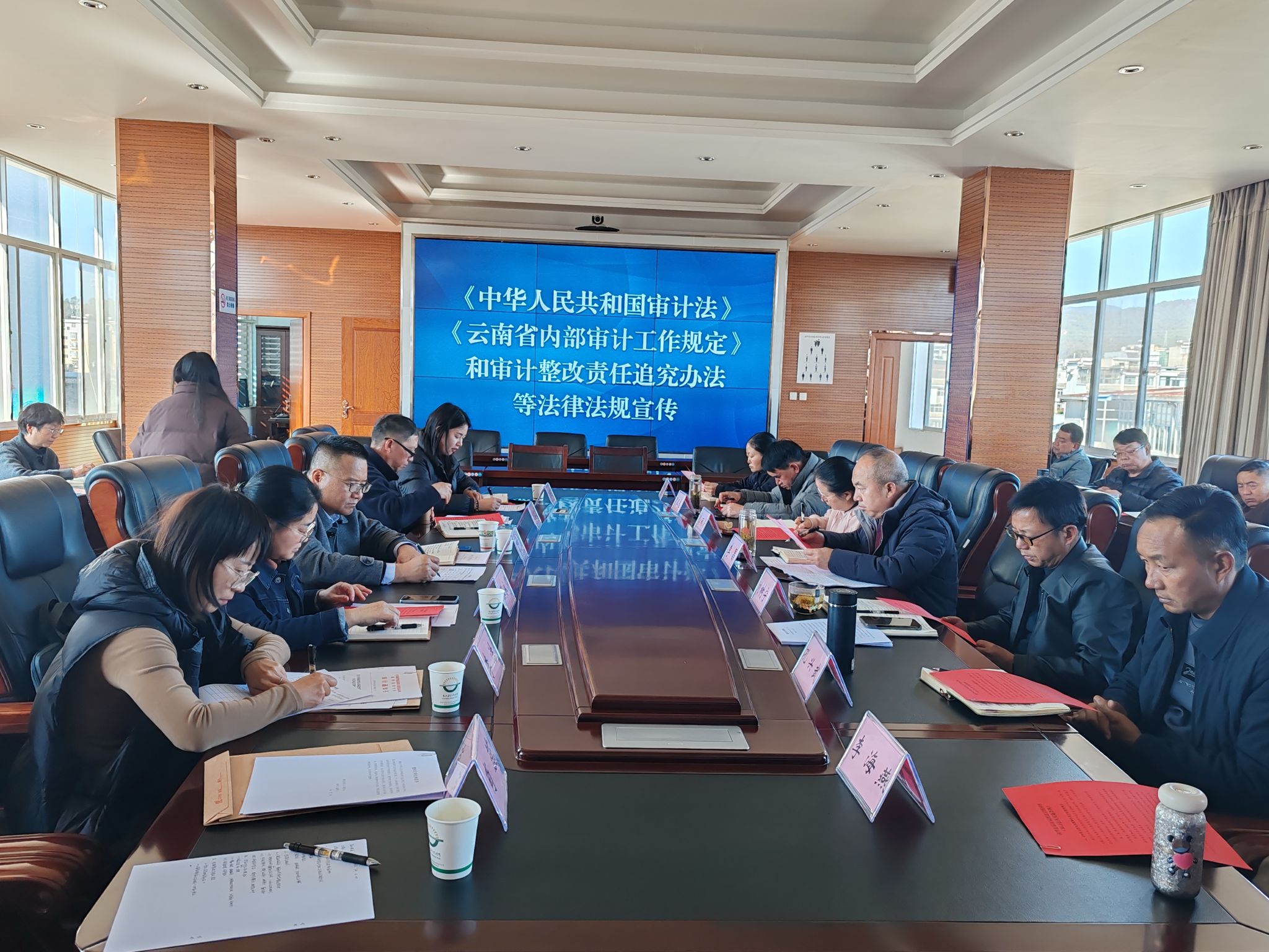 一是认真落实“谁执法,谁普法”的工作要求,进点会议做好“大众化”综合普法。审计组成员向参会人员发放《中华人民共和国审计法》、内部审计、审计整改宣传彩页,并对《中华人民共和国审计法》《云南省内部审计工作规定》《云南省审计查出问题整改责任追究办法(试行)》等相关法律法规进行宣传。