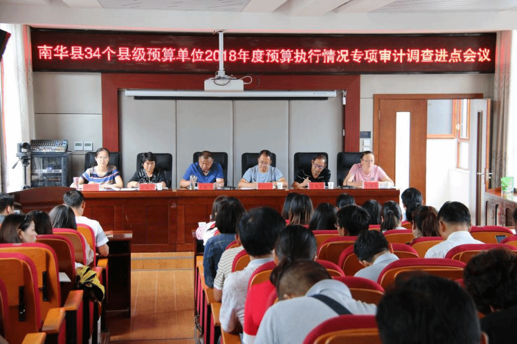 根据经县委审计委员会批准的《南华县2019年度审计项目计划》要求,南华县审计局于7月31日下午在县财政局2楼会议室召开34个县级预算单位2018年度预算执行和其他财政财务收支情况专项审计调查统一进点会议。34个县级一级预算单位的分管领导及财务人员和审计组全体成员共80余人参加会议,县人大常委会财经工委、预算工委及县财政局主要领导应邀到会指导。