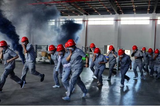 本次演练模拟6月13日14许,楚雄复烤厂生产车间违规动火作业,焊渣飞溅引发仓库起火。演练现场烟雾弥漫、警报四起,公司控制中心操作人员发现一楼窗户烟雾,立即呼叫值班人员到现场疏散员工和组织灭火,并第一时间拨打119报警。接到报警后,消防员和医护小组迅速行动,立即赶赴现场开展救援,所有员工疏散至安全区域。经过参演人员紧张有序的协力合作,火情得到有效控制,演练达到预期效果。