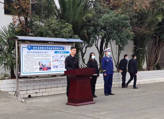 12月15日10时,南华县在腾龙物流有限公司举行南华县危险化学品应急救援大队暨南华应急救援服务中心揭牌仪式,标志着该应急救援队正式进入常态应急值班。县委常委、县人民政府常务副县长纪菊丽、南华县腾龙物流有限公司总经理李绍星为南华县危险化学品应急救援大队揭牌。