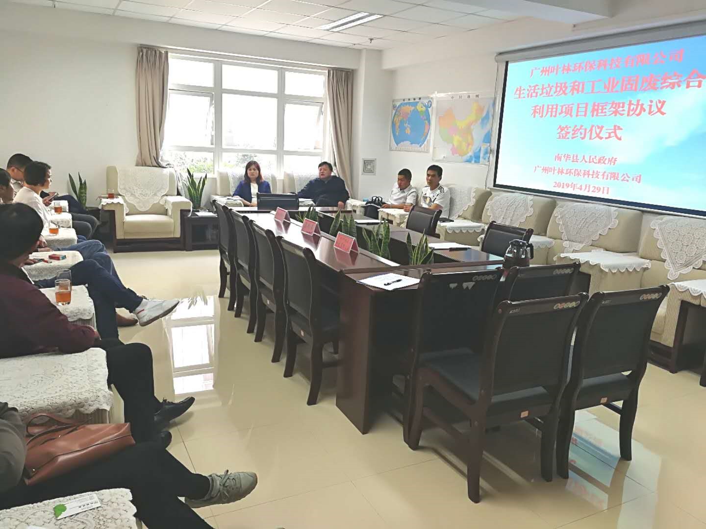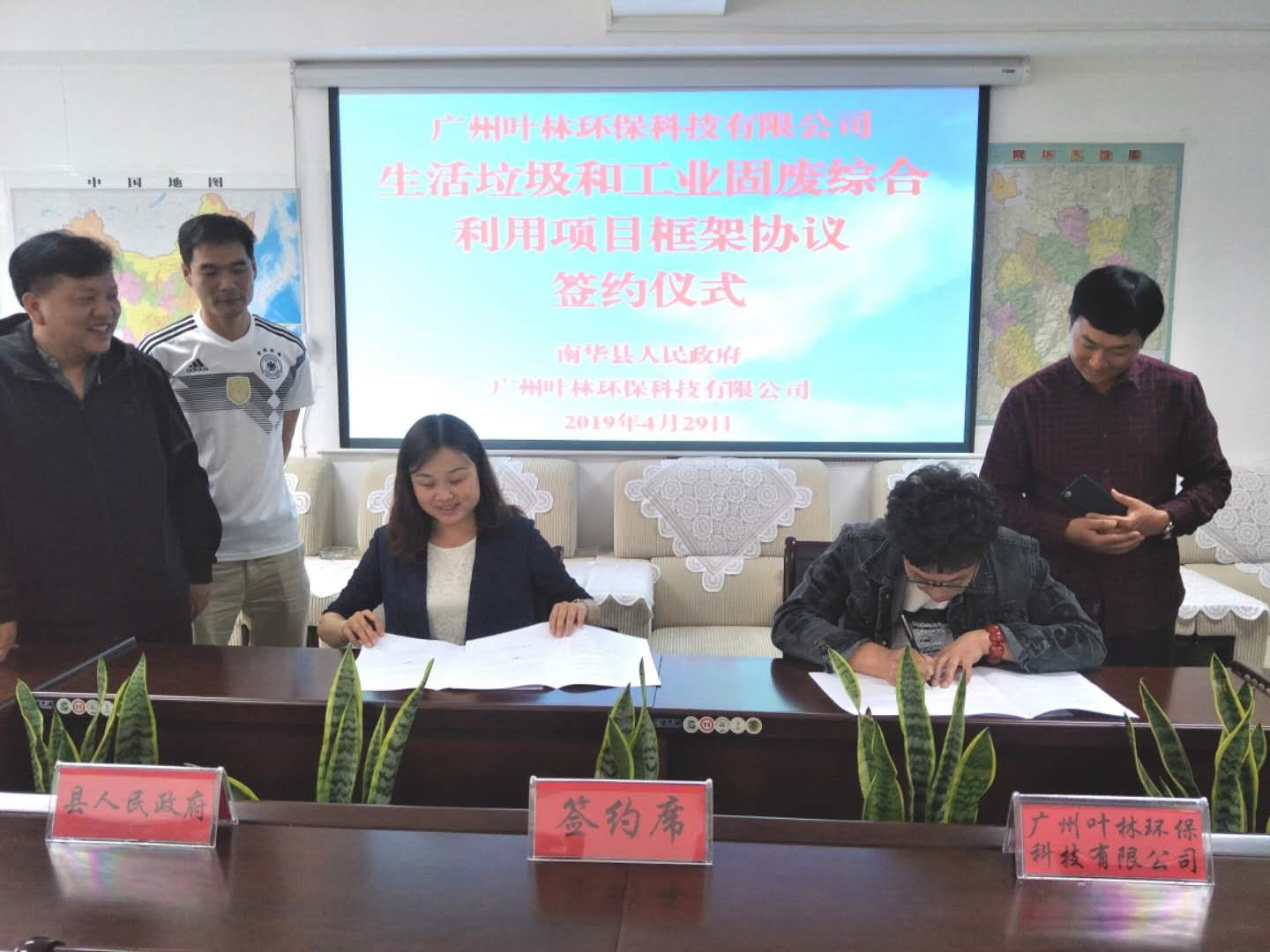 为促进南华县工业产业聚集发展,发挥交通区位优势及良好的投资环境和营商环境,围绕全县重点产业布局及老高坝工业园区产业规划,广州叶林环保科技有限公司与南华县达成生活垃圾和工业固废综合利用项目投资建设合作意向。4月29日,县人民政府副县长纪菊丽代表县政府与广州叶林环保科技有限公司签订了项目框架协议。