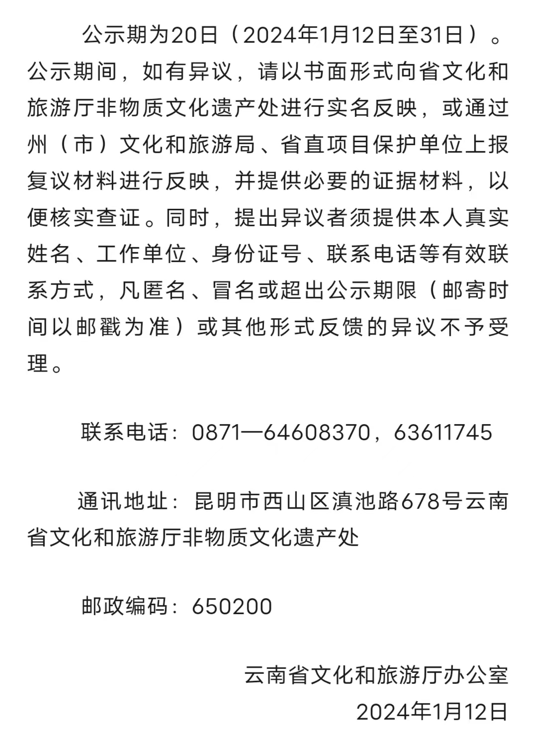 近日,云南省文化和旅游厅发布《云南省文化和旅游厅办公室关于开展第七批省级非物质文化遗产代表性传承人推荐申报工作的通知》(云文旅办发〔2023〕68号),南华县共有6名传承人拟入选,分别是南华沙街调传承人高菊英、彝族三弦舞传承人李正华、根雕(楚雄)技艺传承人刘龙兴、火草纺织技艺传承人罗翠英、彝族三弦制作技艺传承人周建荣、雨露白族正月灯会传承人苏国顺。