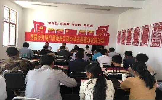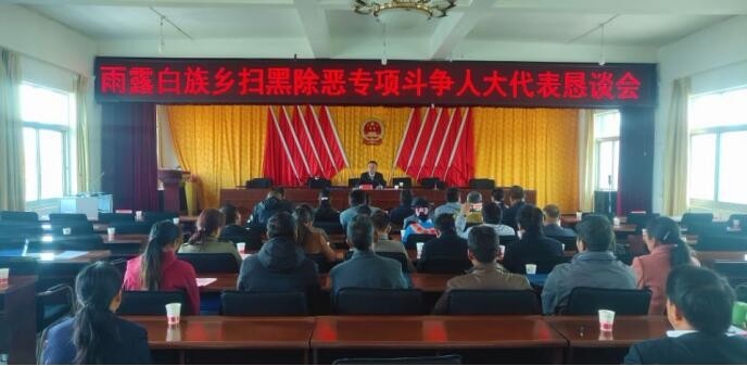 为推进扫黑除恶专项斗争工作深入开展,雨露白族乡人大主席团组建宣讲团,在全乡人大代表和群众中广泛开展扫黑除恶专项斗争主题宣讲和宣传教育活动,进一步加大扫黑除恶专项斗争工作宣传力度,动员广大群众积极参与到扫黑除恶专项斗争中来。