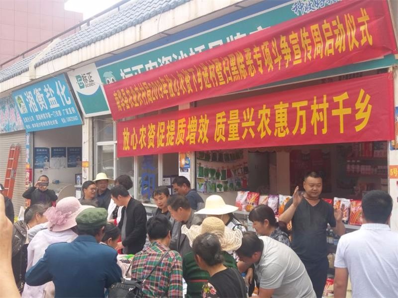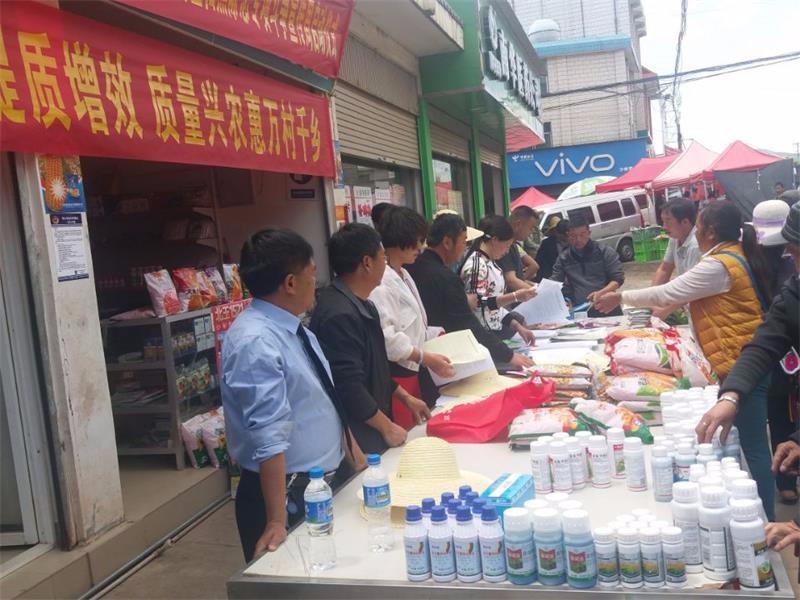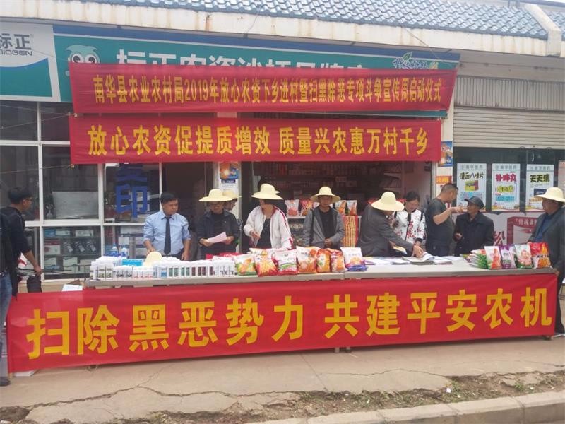 当前,正值春耕生产关键时节,各地已陆续进入春耕备耕时期,农资产品逐渐进入销售、使用旺季。为切实维护农资市场秩序,推进放心农资下乡进村,增强农民群众识假辨假能力,保障农业投入品安全,4月11日“南华县2019年放心农资下乡进村宣传周活动”集中宣传工作在沙桥镇开展。县农业农村局分管领导、沙桥镇分管农业的领导、县农业农村局种植业股、农产品质量安全股、农技中心、农业行政综合执法大队、植检植保站、农产品质量安全检测站、动物卫生监督所、农机安全监理站、农机推广站、沙桥镇农技中心、部分农资经营企业和广大赶集的人民群众共同参加了活动。集中宣传活动紧紧围绕“放心农资进乡村,质量兴农惠万村千乡”这一主题,集中宣传贯彻《中华人民共和国种子法》、《转基因》、《农药管理条例》、《兽药管理条例》、《饲料和饲料添加剂管理条例》、《云南省农作物种子条例》等法律法规,设立假劣农资展示、放心农资展示、涉黑涉恶线索收集、宣传咨询等服务点。共接受群众咨询500多人次,发放《购买农资产品注意事项》、《农产品质量安全相关知识》、《国家禁用和限用农药清单》、《农村灭鼠新技术》、《南华县农业农村局扫黑除恶专项斗争告知书》、《国家禁用和限用兽药清单》、《如何从外观识别假劣兽药、如何购买优质饲料》等宣传资料3500多份。