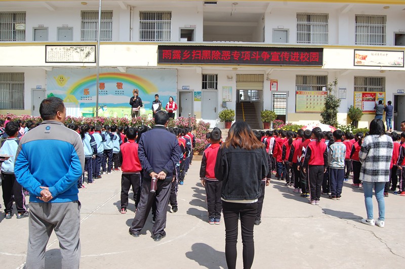 近日,南华县雨露乡派出所、司法所等单位联合开展对辖区中心学校、中学在校学生开展扫黑除恶专项斗争法治宣传教育,切实加强扫黑除恶专项斗争的宣传力度,防范黑恶势力渗入校园,打造平安和谐校园,掀起新一轮扫黑除恶专项斗争宣传热潮,全力营造扫黑除恶专项斗争的浓厚氛围。