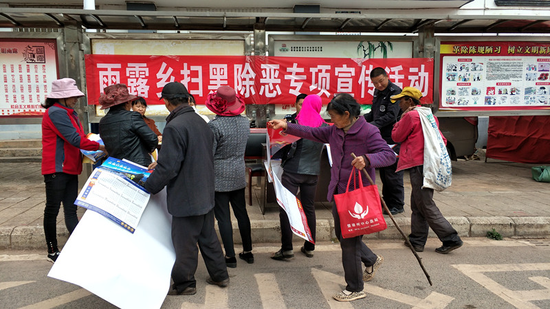 近日,南华县雨露乡利用街天群众较集中的时机,在雨露集市开展扫黑除恶专项斗争知识集中宣传活动,进一步提高全乡群众对扫黑除恶专项斗争的知晓率和参与度。