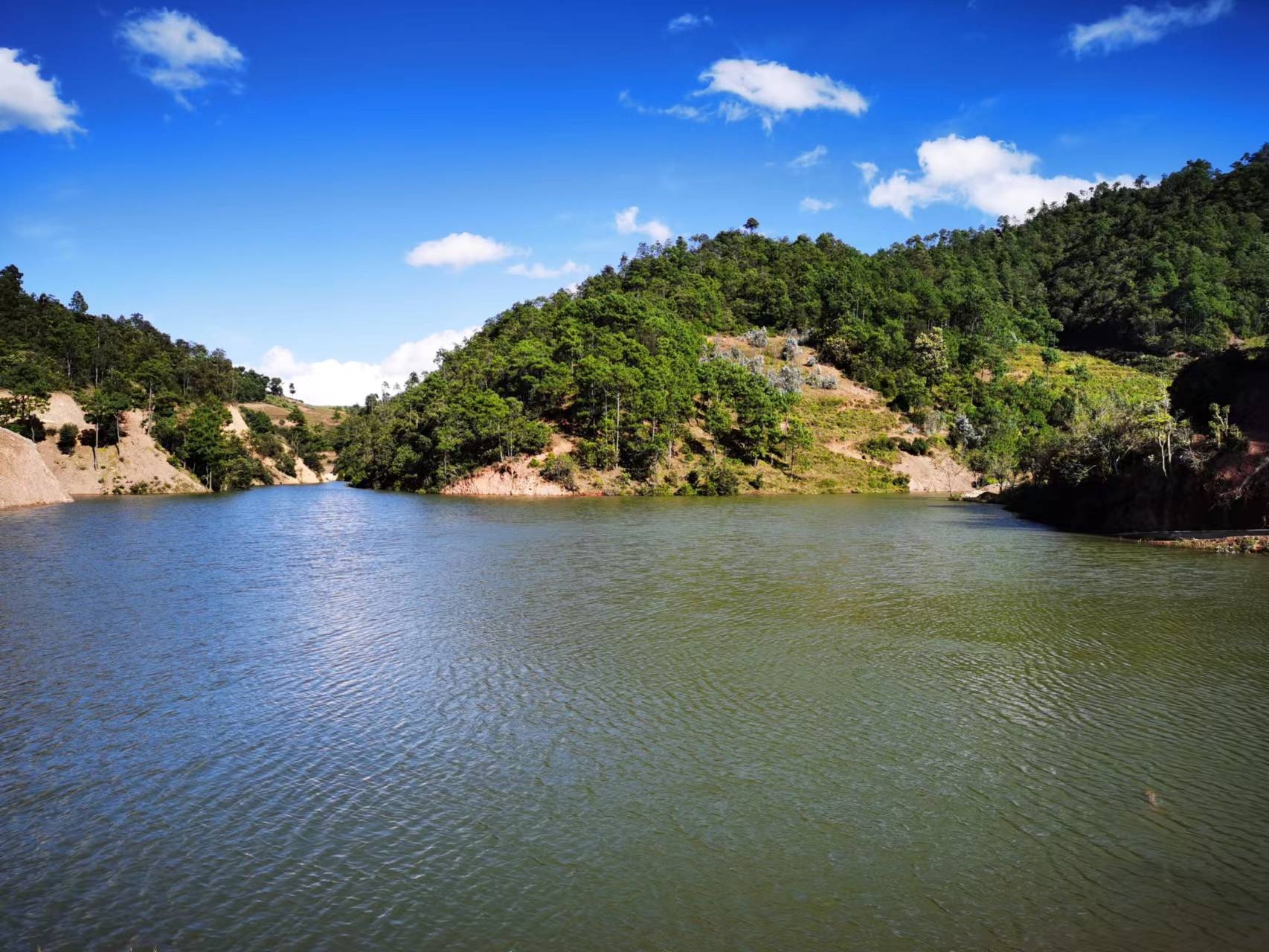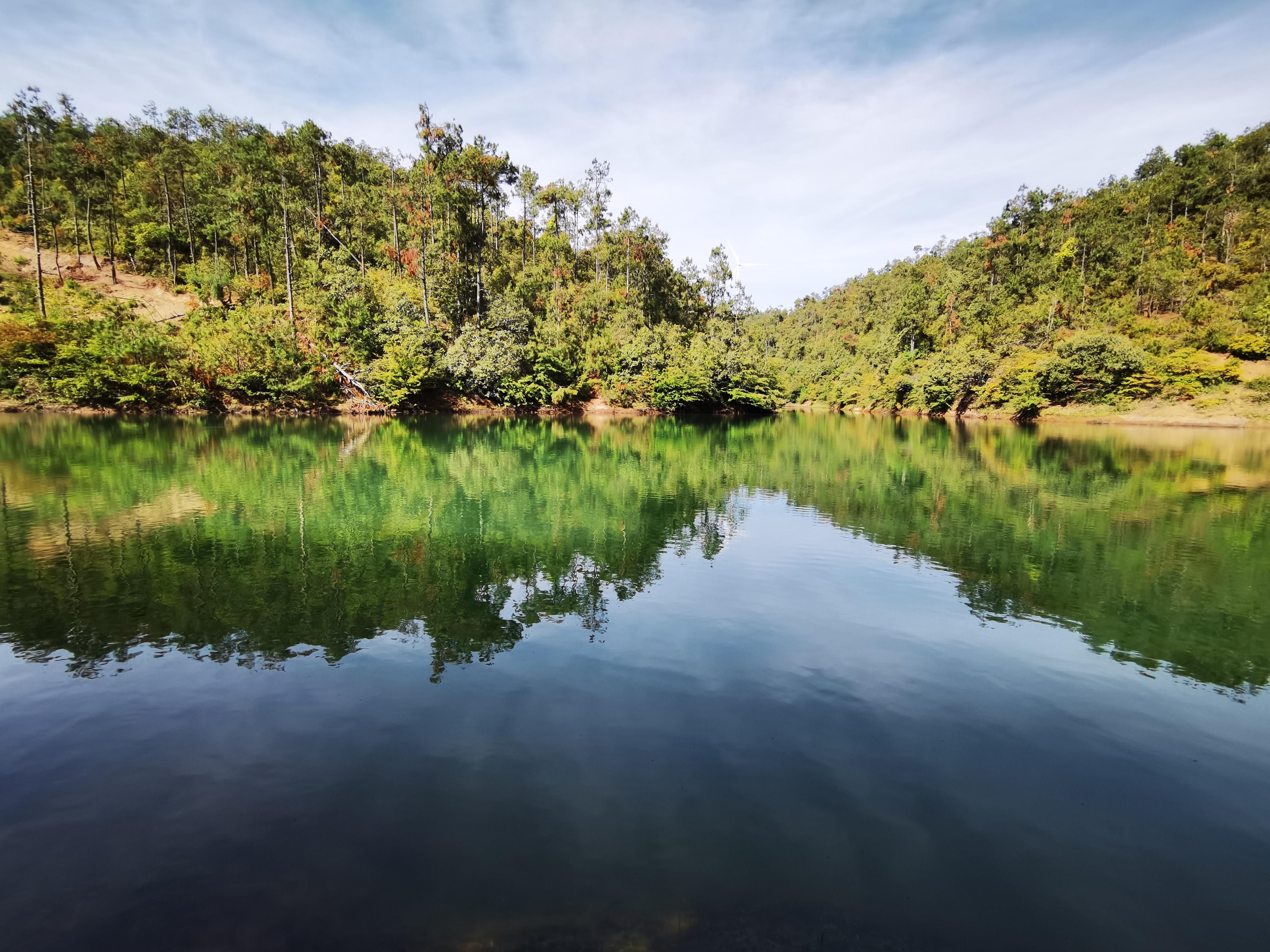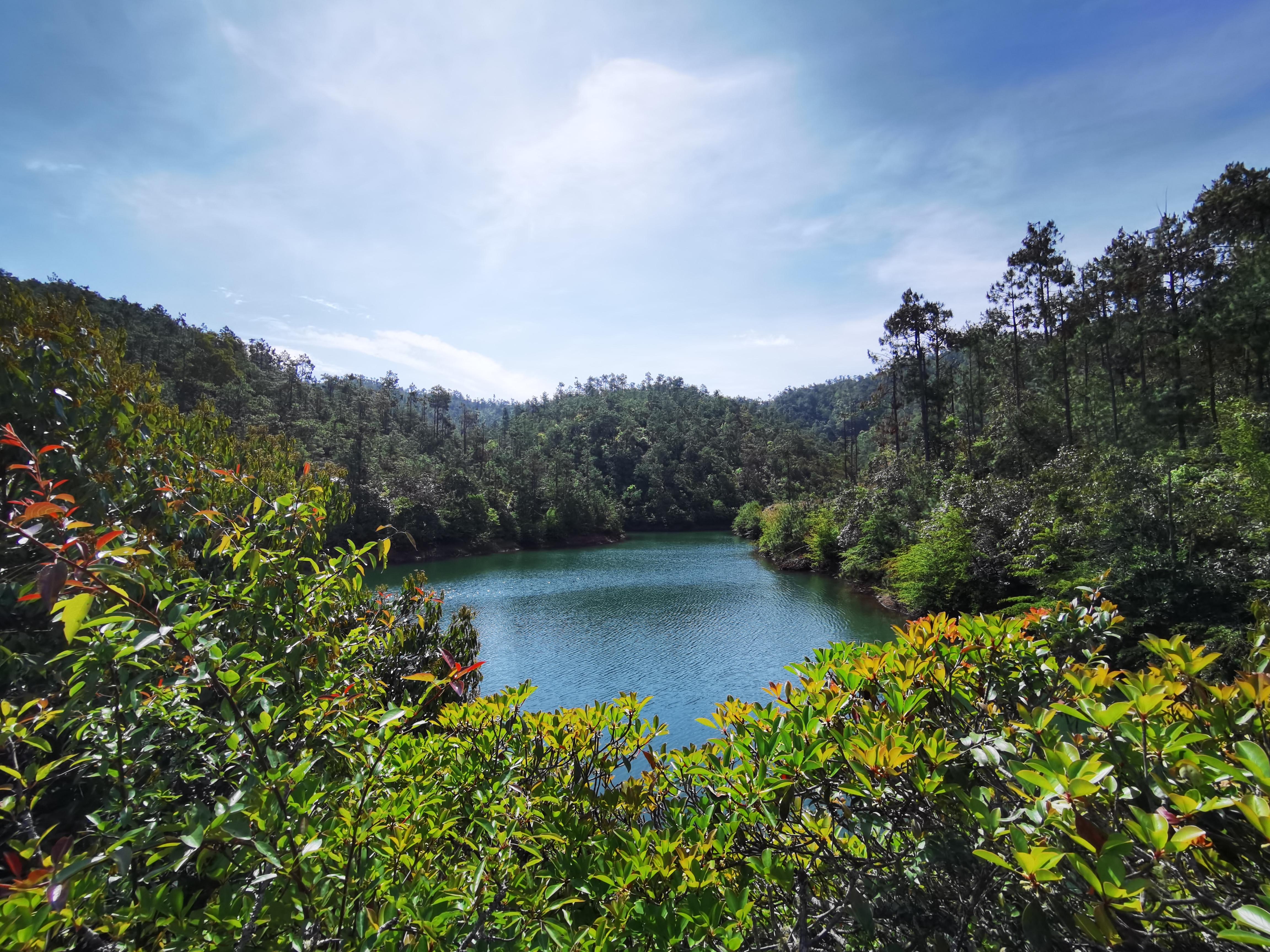 有一汪静谧的清泉藏在五街镇芹菜塘村委会的山中。朗朗晴天,来到芹菜塘村委会龙泽溪湖边,山风扑面而来,蓝天白云之下,森林茂密,绿波荡漾,时间仿佛静止了。