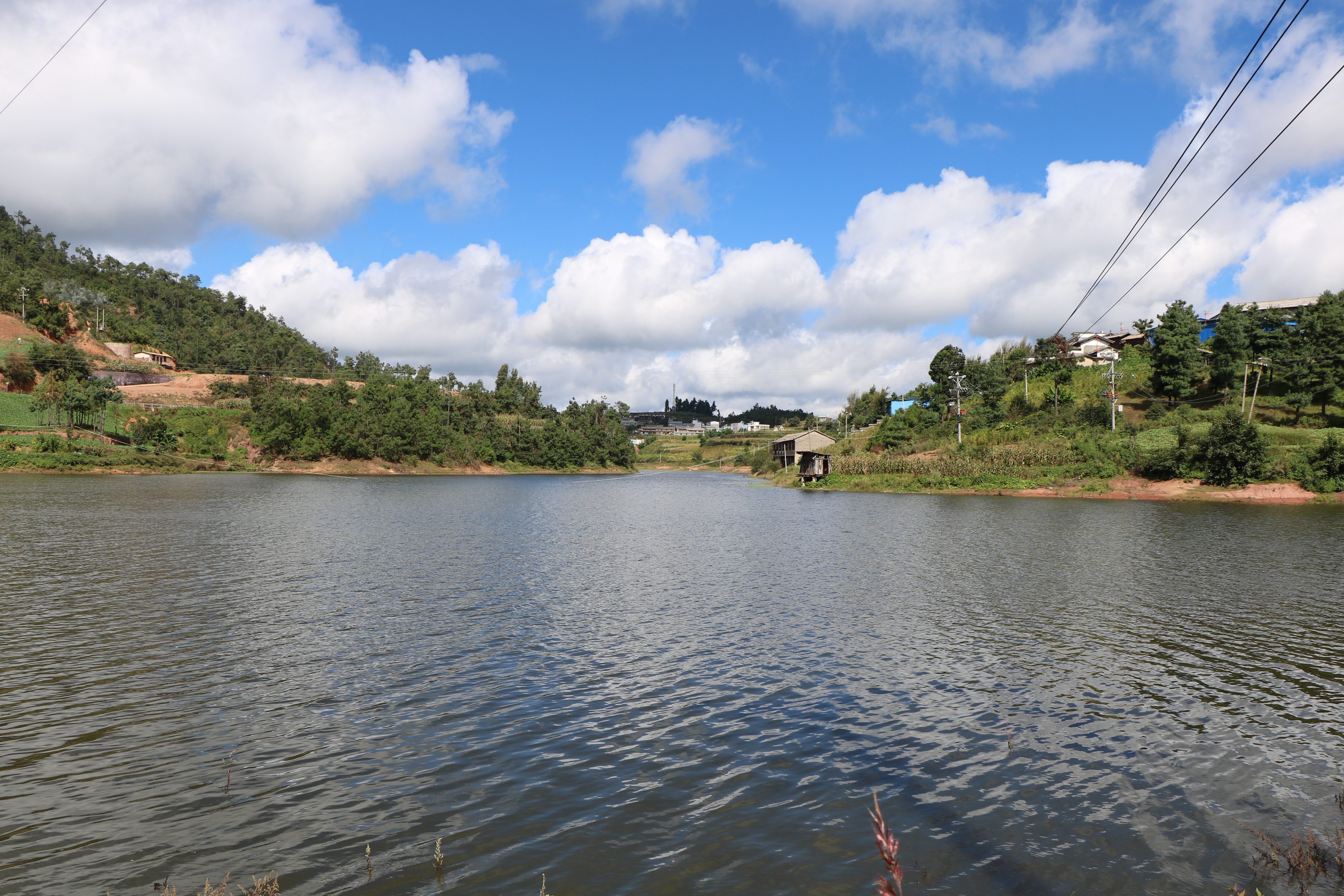 湖边错落有致的民房,村民们推窗便能欣赏美景,吃完饭沿着湖边散步,左边是松茸飘香的菌山,右边是静谧安宁的湖水,好不自在怡然。