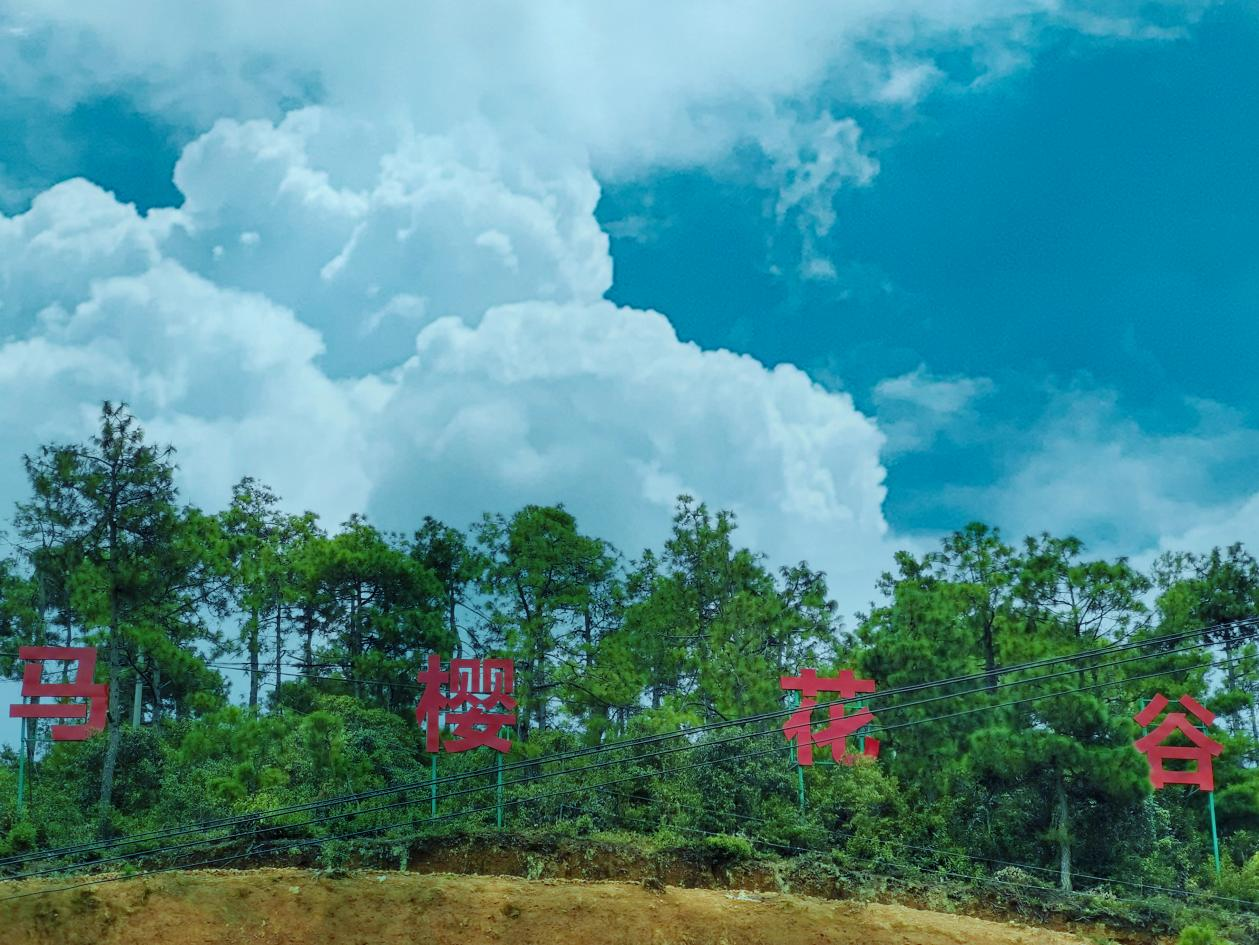 马樱花谷也位于芹菜塘小组,与菌王山隔路相望。沿着栈道向上攀登,天空愈发近、愈发蓝。站在观景台向下望,苍翠茂密的山景映入眼帘,让人流连忘返。