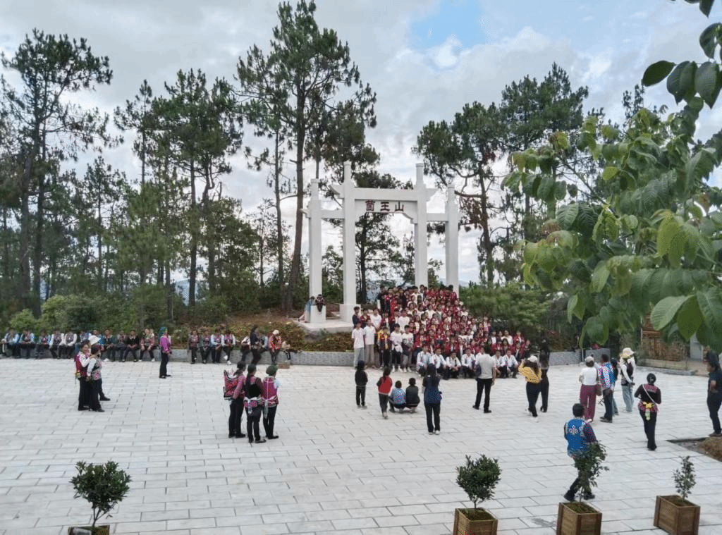 山顶是平坦开阔的“踏歌场”,鲜花簇拥着踏歌场,村民们闲暇时刻便相约到此打跳唱歌,好一番热闹的场景。“镇政府帮我们修了栈道,我们上山也方便了,沿途风景也好,还能强身健体,尤其是马樱花开的时候,美得很呢!”笔者下山途中遇到村民李叔正在爬山锻炼身体。