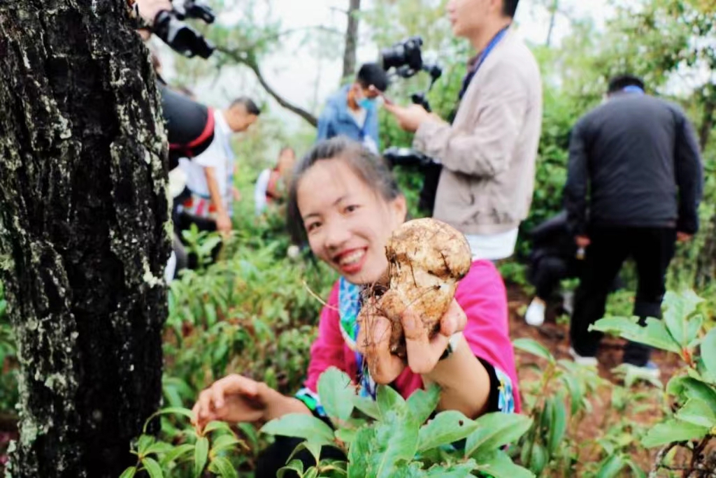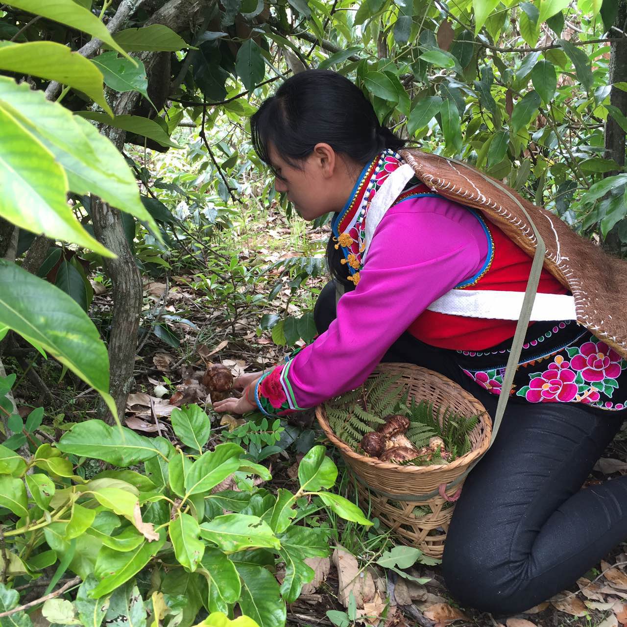 松茸出土的季节,勤劳的彝家村民天不亮就忙着在山上找松茸,在茂密的大山深处,一朵朵松茸悄然冒出地面,捡松茸的村民们弯腰小心翼翼地拨开树叶,用木棍撬动松茸根部,小心拔起,再将散落的土壤和树叶盖好。嘴里哼唱的彝族小调,仿佛在感谢大自然的馈赠。
