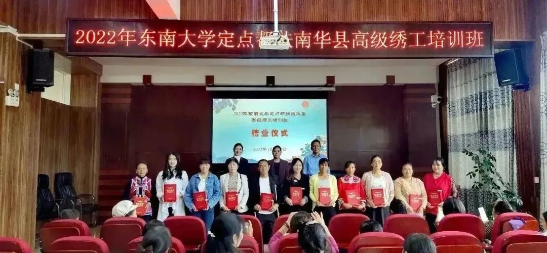 近年来,南华县充分依托东南大学、中国石油大学(北京)、上海机场(集团)有限公司等定点帮扶资源,在兔街、马街、红土坡、罗武庄等乡镇建立了8个彝绣生产车间,并分类组织开展彝绣从业人员培训231期,15389人次,举办首届“东大杯”彝绣技能大赛,在搭建交流互促平台的同时,进一步提升彝绣从业人员技能水平,壮大南华彝绣从业人员队伍,有效带动了10个乡镇60余个村、3780户脱贫农户、2万余人以及残疾人197人从事彝绣加工,月收入达4000元以上,靠自己的双手脱贫致富,真正实现了“小产业”撬动“大民生”。