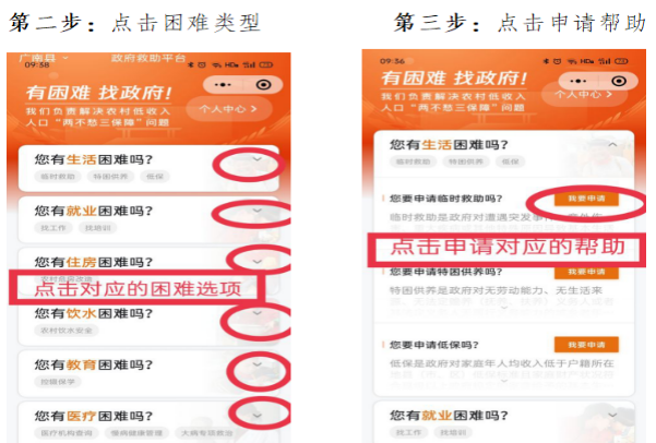 云南省“政府救助平台”已于2021年7月正式上线运行,目前群众可以在线申请的事项有生活困难(临时救助、特困供养、低保)、就业困难(找工作、找培训)、住房困难(农村危房改造)、饮水困难(农村饮水安全)、教育困难(控辍保学)、医疗困难(异地就医未报销、参保登记、大病救助、医疗机构查询、慢病健康管理、大病专项救助)等六个事项14个小项,涉及民政局、人力资源和社会保障局、住房城乡建设局、水务局、教育体育局、卫生健康局、医疗保障局七个部门。有需求的困难群众可以通过微信扫描二维码或者使用微信搜索小程序“云南省政府救助平台”,上线申请救助,具体按平台提示操作。