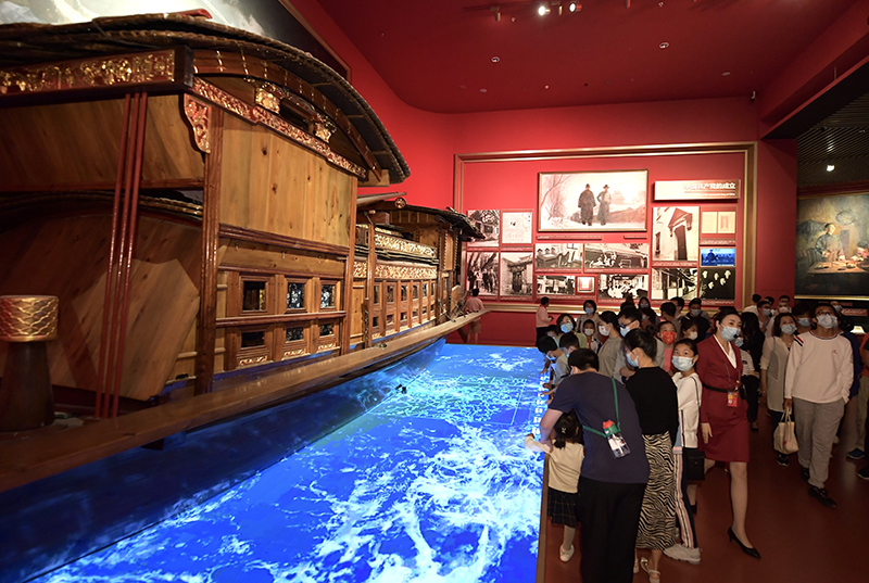 观众在中国共产党历史展览馆参观(2021年10月1日摄)。新华社记者 李贺 摄