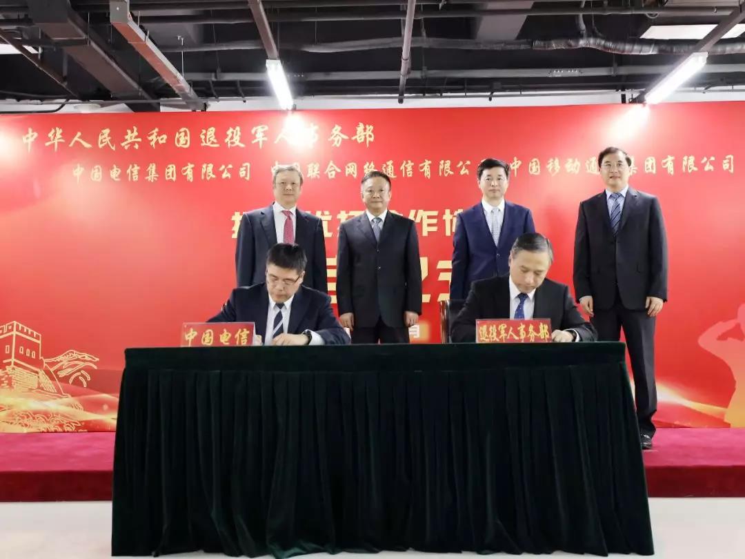 9月24日,退役军人事务部与中国电信、中国联通、中国移动3家电信运营商在京签署拥军优抚合作协议。退役军人事务部部长孙绍骋与3家电信运营商有关领导共同出席签约仪式。