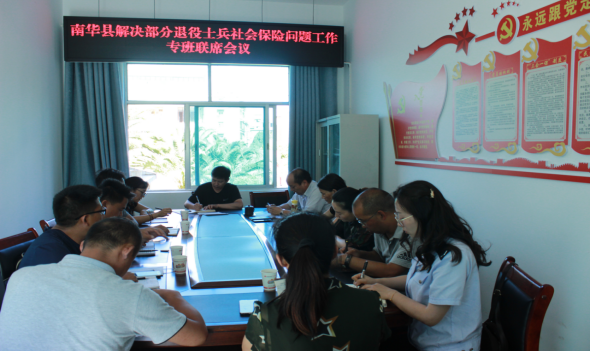 1月16日下午,南华县召开部分退役士兵保险接续工作推进会议,研究部署我县解决部分退役士兵社会保险接续工作。县财政局、县民政局、县人社局、县医疗保障局、县税务局,县退役军人事务局分管领导及业务人员参加会议。