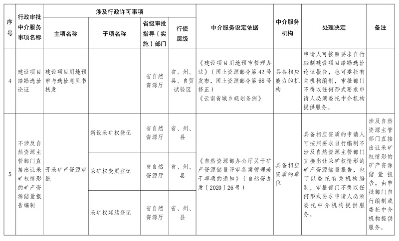2.云南省保留由申请人委托中介服务机构开展的行政审批中介服务事项目录(2021年版)