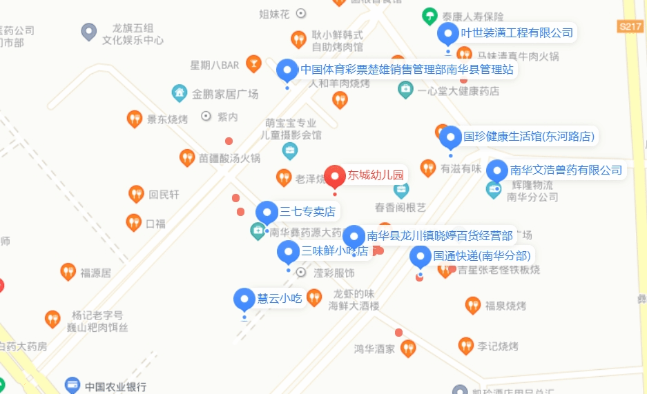南华县东城幼儿园:位于南华县商住小区龙泉市场后门旁。学校附近暂无公交站台。