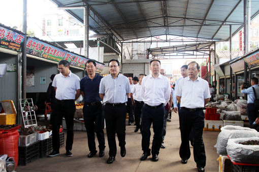 考察团一行在州委副书记、代理州长迟中华,州委常委、州委秘书长赵晓明,副州长周兴国,县委书记李云升,县委副书记、县人民政府县长何文明,县委常委、县委办主任何文育的陪同下深入我县野生菌交易市场实地参观考察,并就高原特色农业发展和蘑菇小镇建设等项目的进行交流。