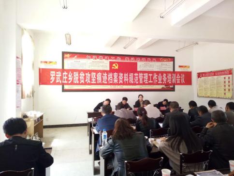 3月15日,县委副书记杨梦婷带领县扶贫办、县级相关挂包单位负责人一行到罗武庄乡指导脱贫攻坚痕迹档案资料规范管理工作业务,在培训会议上,杨副书记深入分析了2018年脱贫攻坚工作面临的新形势新任务,对下步工作提出要认清形势、压实责任、集中精力、严格标准、落实措施、补齐短板、统筹联动、合力打赢脱贫攻坚战。县扶贫办围绕脱贫攻坚痕迹档案资料规范管理工作进行具体业务培训,对涉及的各类表格、图片资料等痕迹材料的填写、收集、分类、存档进行了详细讲解和耐心培训,对户档、村档、乡档需要注意的细节和关键点进行特别强调,并当场分组进行实际操作培训,进一步规范了脱贫攻坚痕迹档案资料管理。