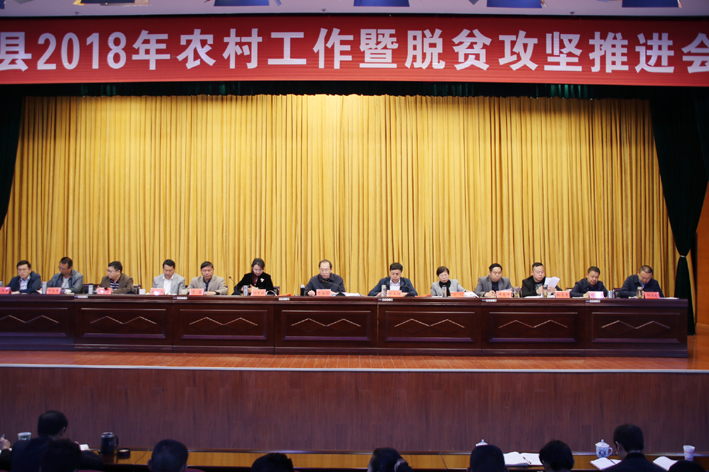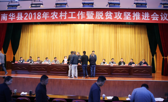 近日,我县召开2018年农村工作暨脱贫攻坚推进会议,深入学习中央及省州相关会议精神,深入分析我县“三农”工作和脱贫攻坚工作的形势,安排部署相关工作。会议要求,全县各级各部门要实施乡村振兴战略,坚决实现脱贫摘帽,奋力开创新时代南华“三农”工作新局面。