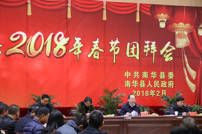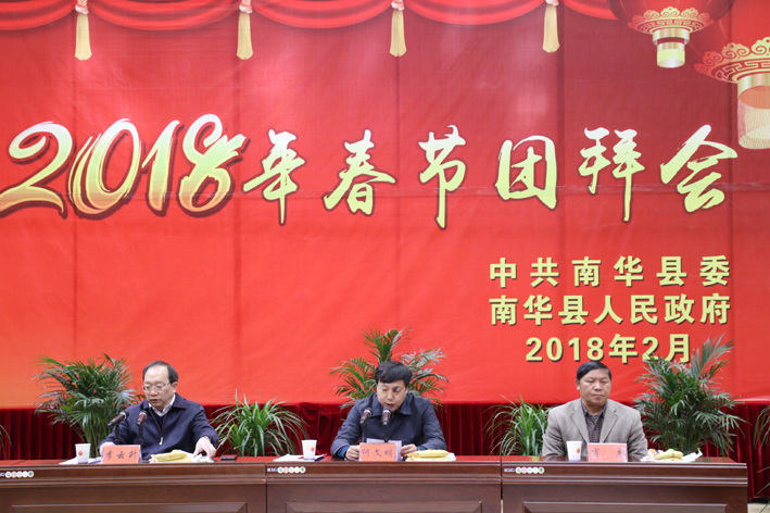 李云升代表四班子向全县的父老乡亲,老领导、离退休老同志、广大干部职工和驻南华部队官兵致以新春的美好祝福。李云升指出,在刚刚过去的2017年,在习近平新时代中国特色社会主义思想和党的十九大精神指引下,全县上下团结一心、奋力拼搏,各项工作在快速推进中取得新成效、实现新突破,交出了一份来之不易的成绩单。每一项成绩、每一点进步的取得,都离不开全县人民的共同努力,离不开各族各界人士的鼎力支持,更离不开广大干部职工的辛勤付出。