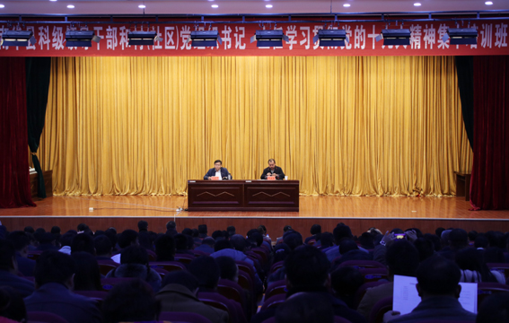 近日,我县开展科级领导和村(社区)党组织书记、主任学习贯彻党的十九大精神培训班开班,来自全县科级领导干部和村(社区)党组织书记、主任等500余人参加培训,拉开了我县县乡村三级学习贯彻党的十九大精神全覆盖大培训工作序幕,确保党的十九大精神在我县落地生根、开花结果,为决战脱贫攻坚、决胜全面小康奠定坚实的基础。